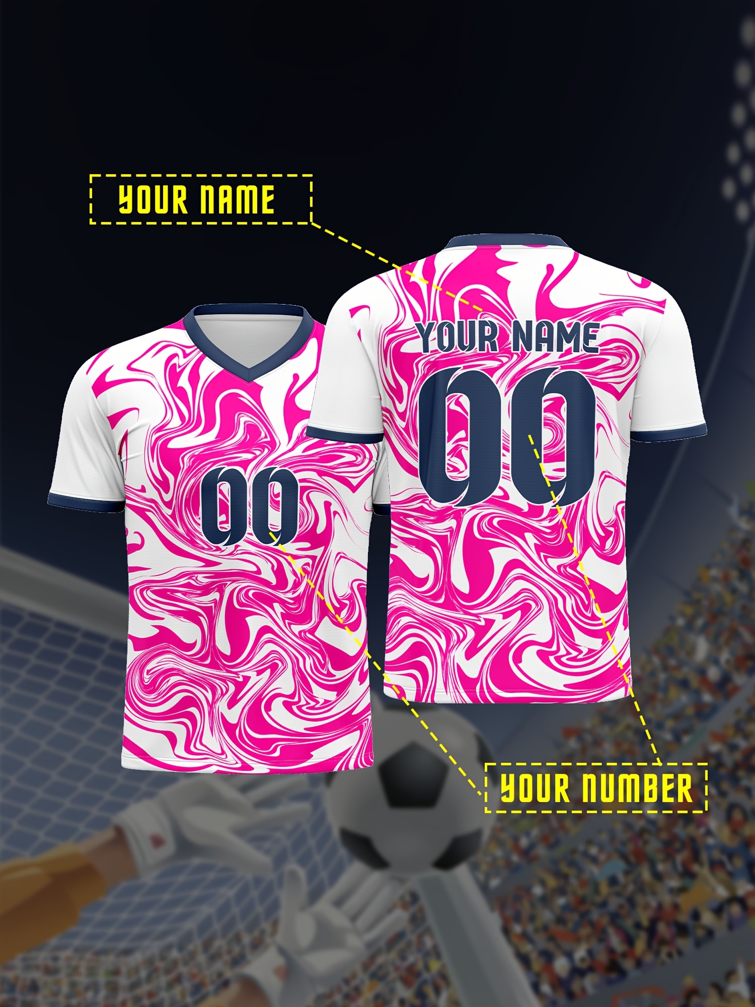 1pc Customizable Soccer Jersey for Kids - V-Neck, All-Over Print, Knit Fabric, Polyester, Medium Stretch, Personalized Name & Number, for Boys & Girls, Sports & Casual Wear, Spring/Summer/Fall