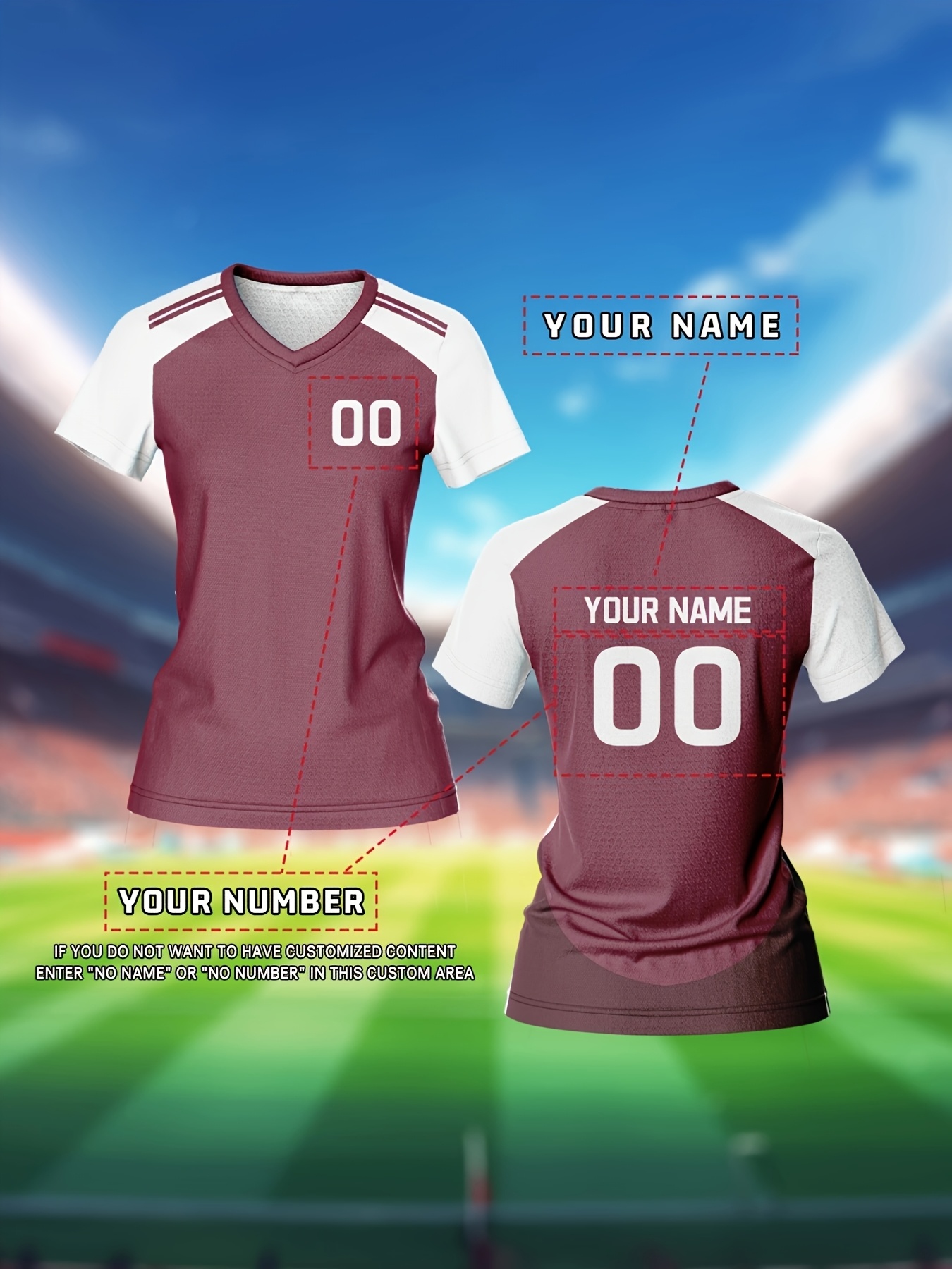 [Customizable Soccer Jersey] Maroon & White Customizable Women's V-Neck Soccer Jersey | Quick-Dry Fabric, Breathable, Training Apparel with Name & Number