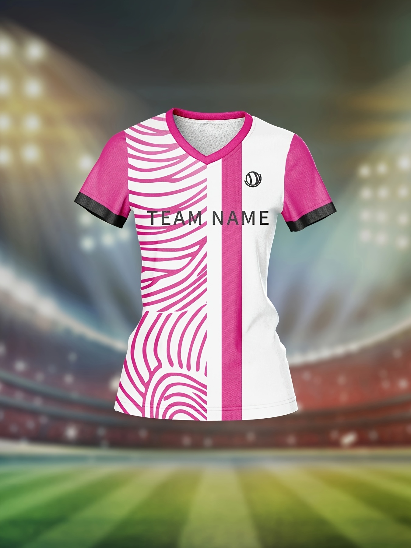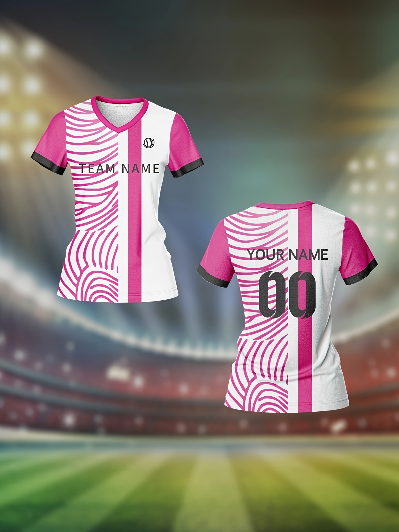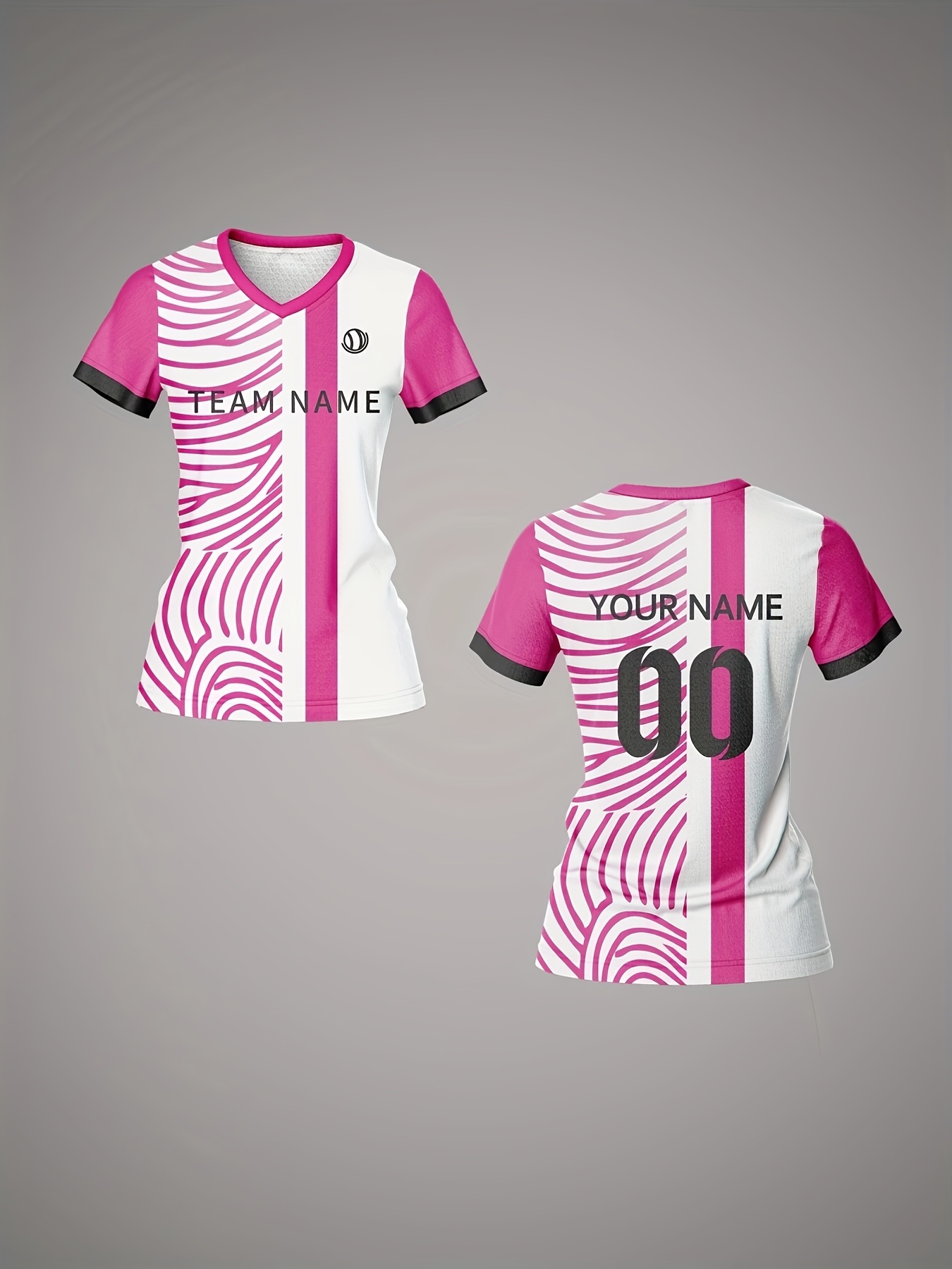Customizable Women'S V-Neck Soccer Jersey - Personalized Team Name & Number, Breathable & Quick-Dry Fitness Shirt for Training & Casual Wear, Pink & White Design, Spring/Summer/Fall, Training Apparel | Stylish Soccer Top | Quickdry Materia
