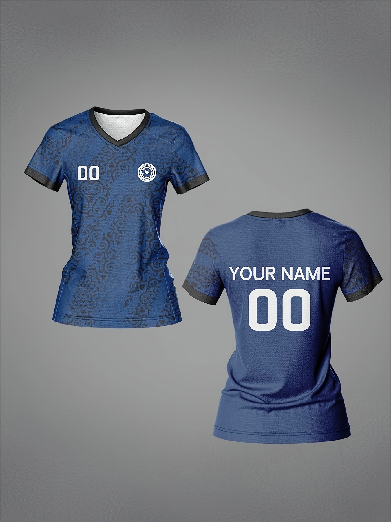 Customized Name & Number Women's V-Neck Football Jersey - Breathable Quick-Dry Moisture-Wicking Fabric, All-Over Print Design for Team Training, Fitness & Casual Wear (Spring/Summer/Fall), Personalized Football Jersey