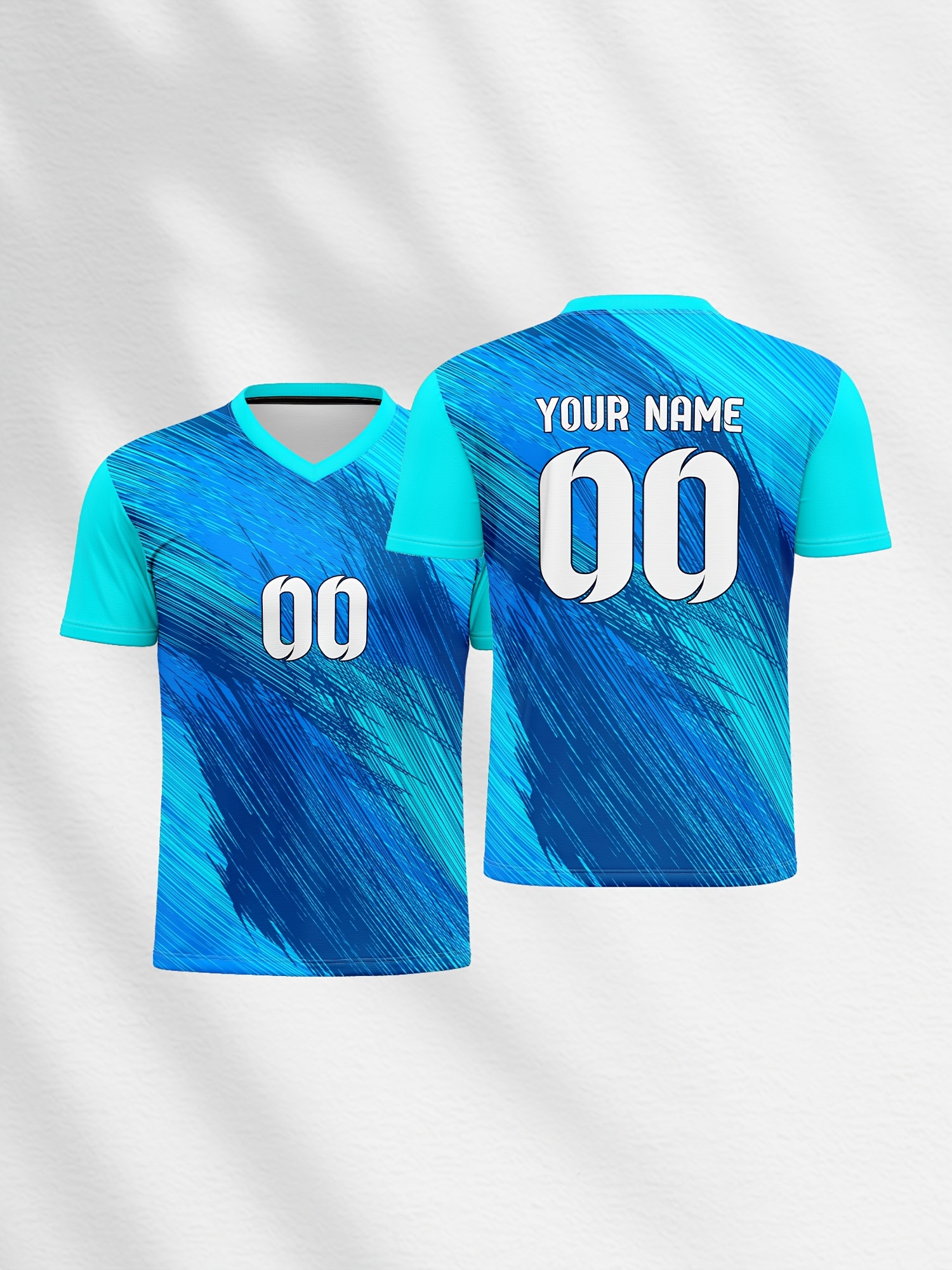 1pc Customizable Soccer Jersey for Kids - V-Neck, All-Season Knit Polyester Football Shirt with Personalized Name & Number, Preppy Street Style, Medium Stretch, for Sports & Casual Wear