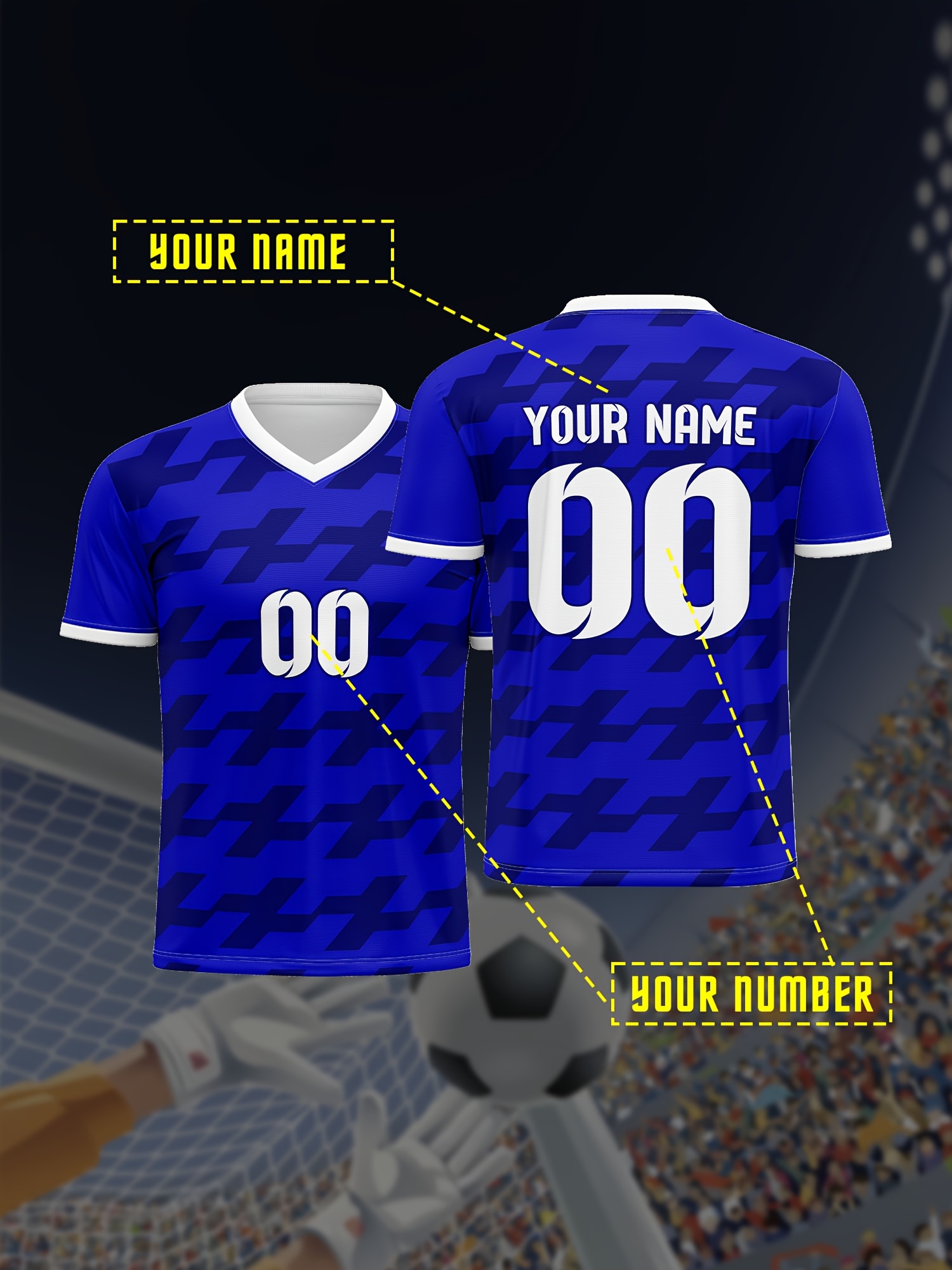 1pc Customizable Soccer Jersey for Kids - V-Neck, All-Season Knit Polyester Football Shirt with Personalized Name & Number, Preppy Street Style, Medium Stretch, Patterned - Ideal for Sports, Parties, Beach, Casual Outings