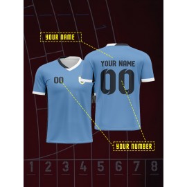 [1pc Customizable Soccer Jersey] 1pc Customizable Soccer Jersey for Kids | Personalized Name & Number, V-Neck, Knit Polyester, All-Season Sports & Casual Wear, Preppy Street Style, Medium Stretch, for Boys & Girls, Beach & Party Top