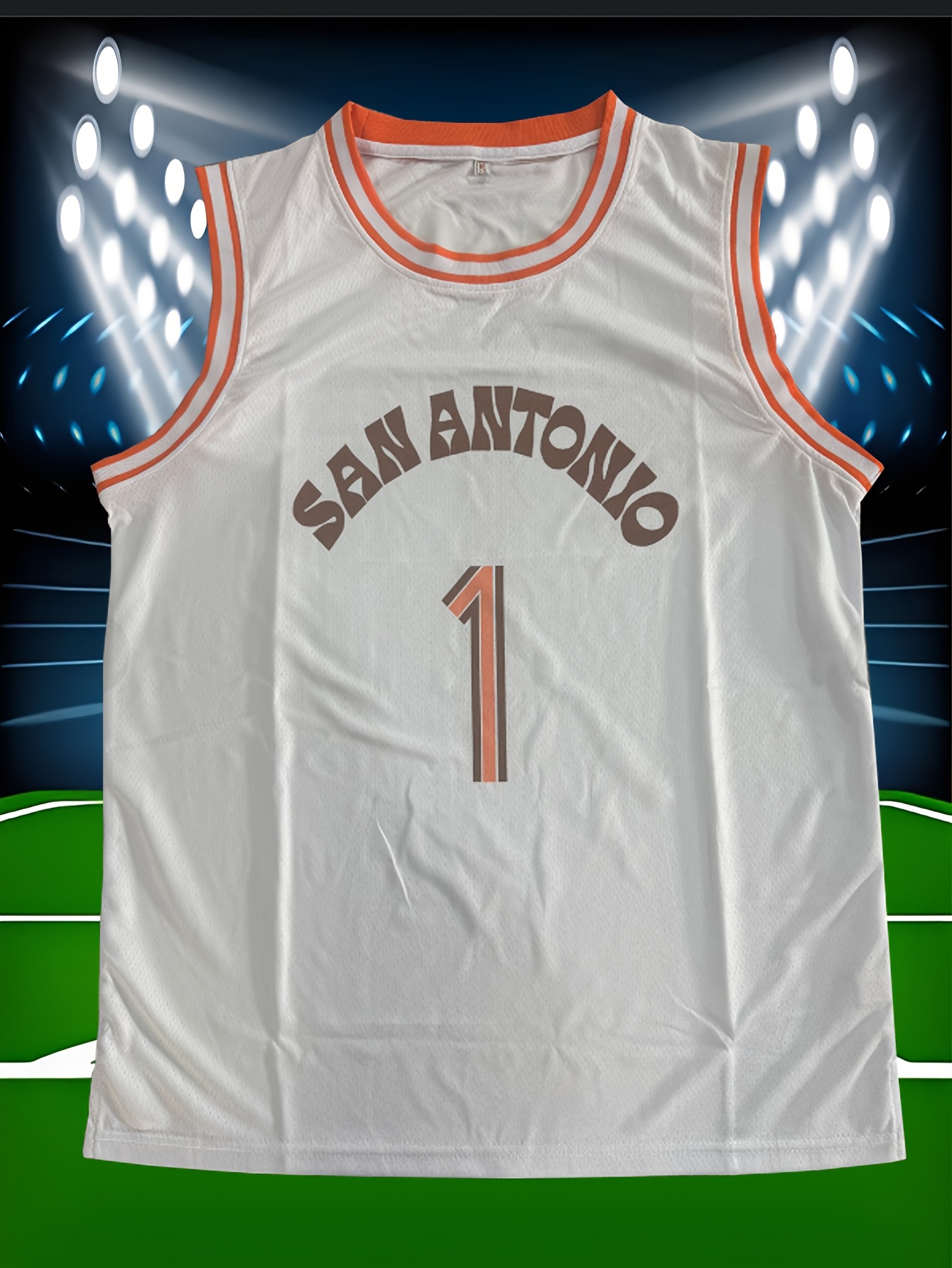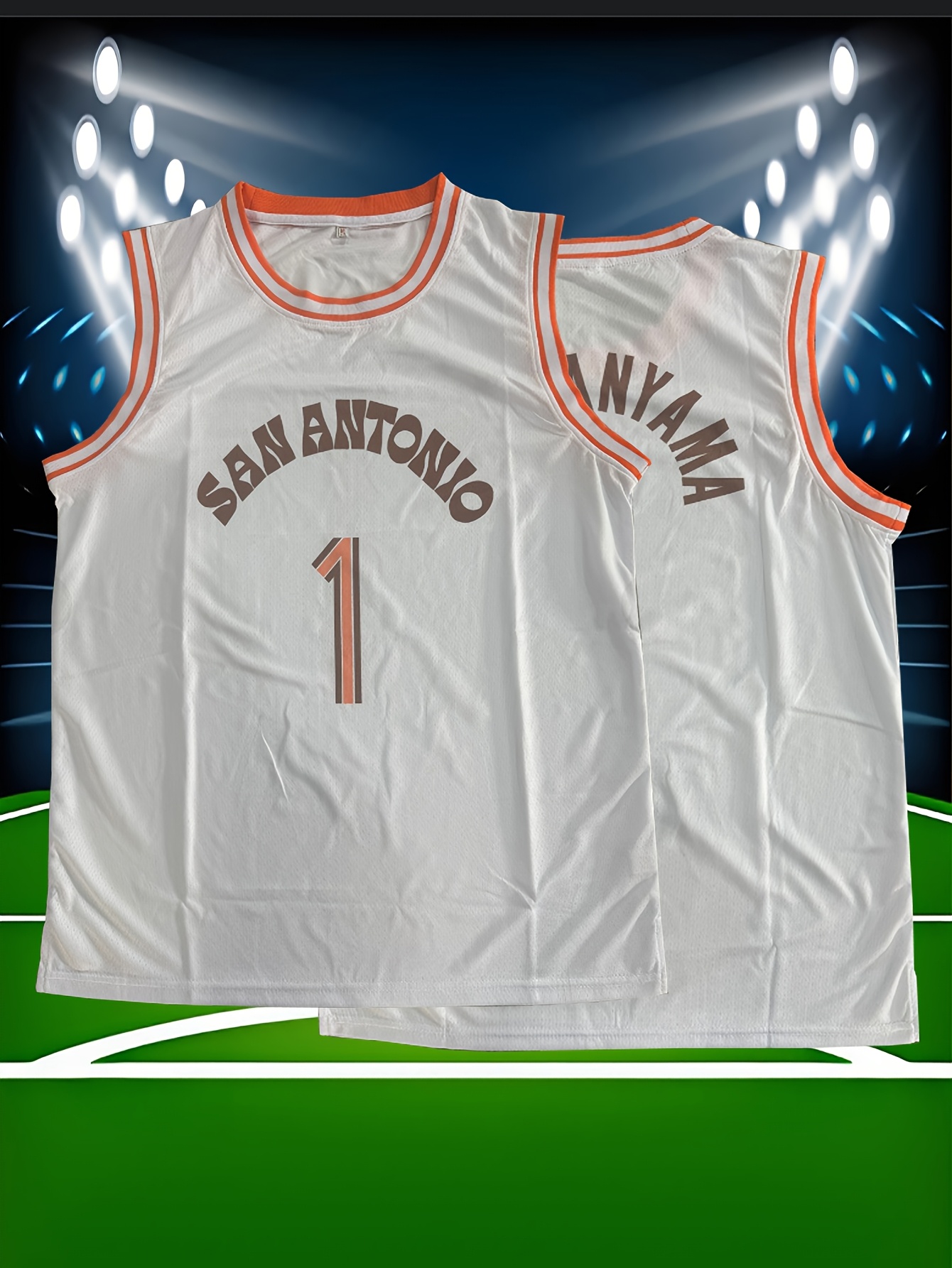 Men's #1 San Antonio Basketball Jersey - White Embroidered Letters & Numbers, Loose Fit, 100% Polyester Knit Fabric, Round Neck, Perfect for Team Sports, Parties, and Outdoor Activities