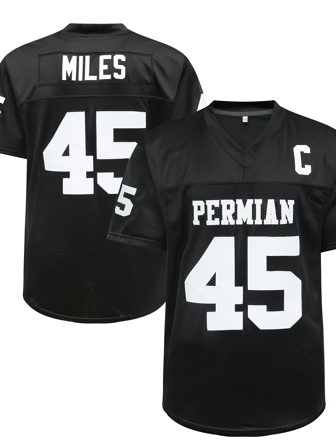 [Comfortable] Men's #45 "Permian" Black American Football Jersey - Breathable & Embroidered, V-Neck, Short Sleeve, Loose Fit for Casual, Streetwear & Sports Activities