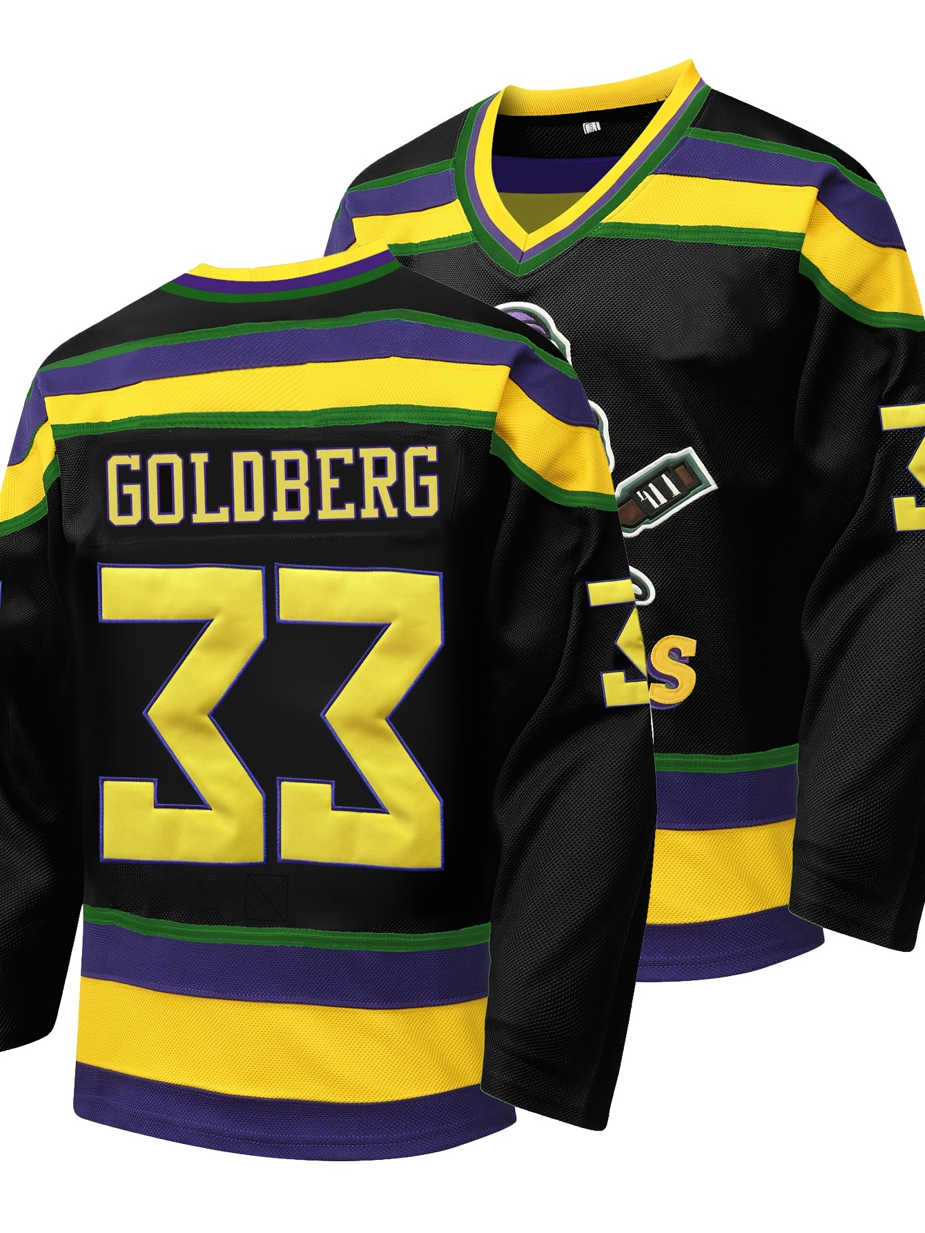 Men's #33 Black and Golden Ice Hockey Jersey - Embroidered, Breathable Polyester, V-Neck Captain's Sweatshirt with Striped Accents - Sporty & Casual for All Seasons