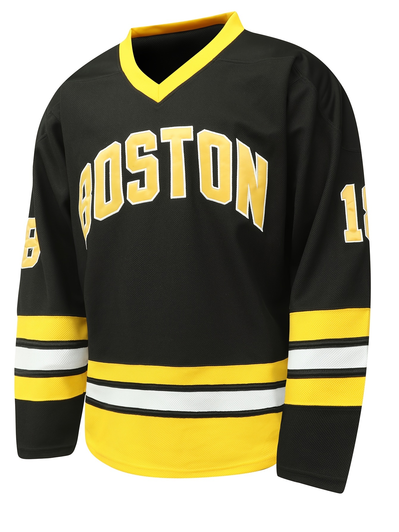 Men's Black # 18 Ice Hockey Sweatshirt, Loose Embroidered Long Sleeves, Sporty, Fashionable And Casual, Breathable On The Street