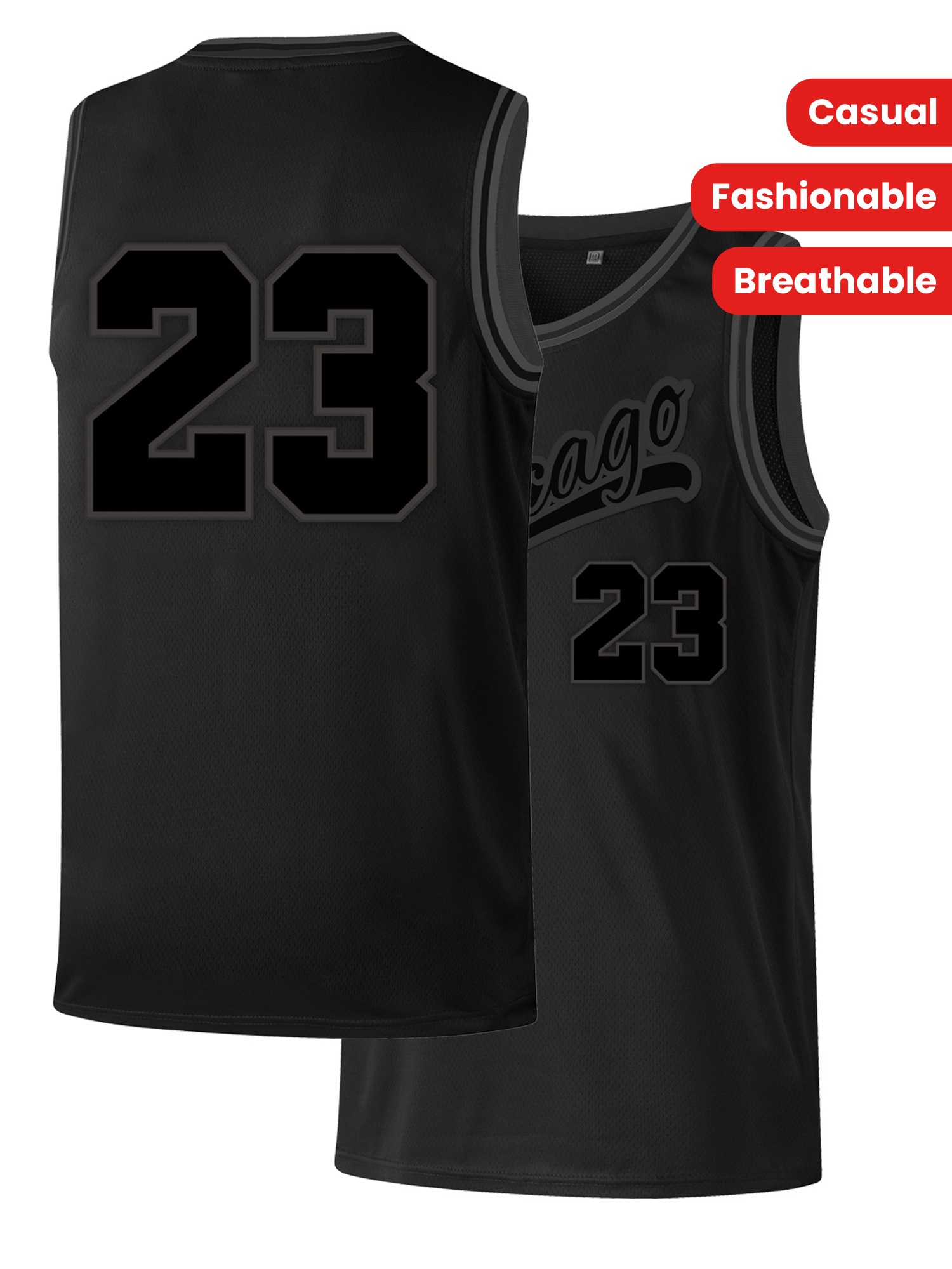 Men'S Black And Gray # 23 Basketball Shirt, Casual, Fashionable, Breathable, Sporty, High-Quality Embroidered Street Basketball Pullover