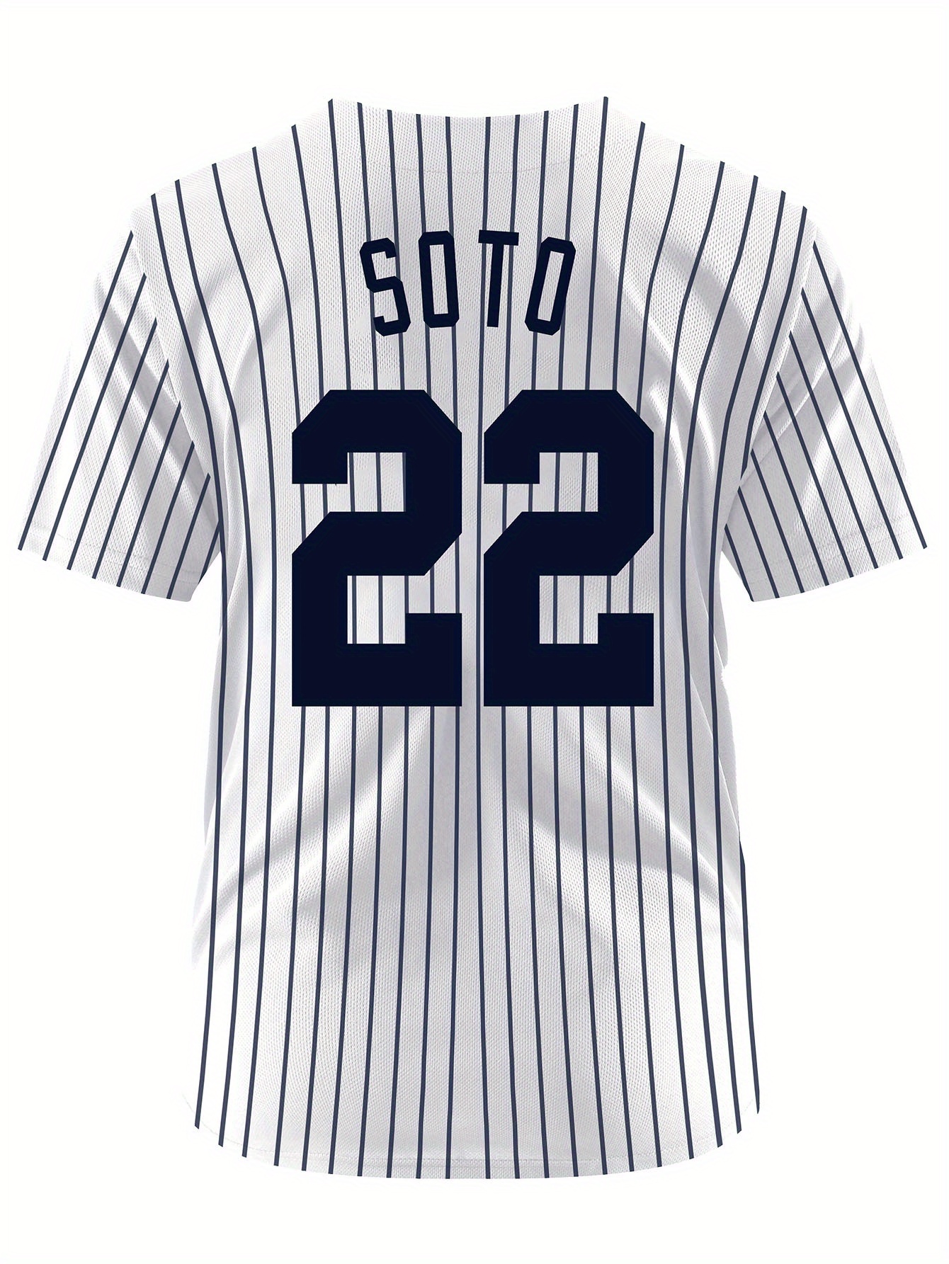 Men'S Black And White Stripe # 22 Baseball Shirt, Loose Embroidered Sports, Fashionable And Casual, Street Breathable