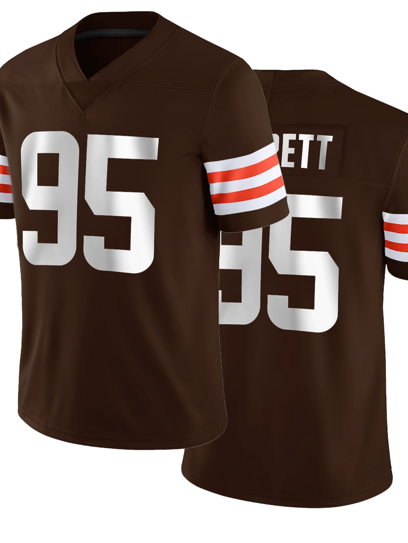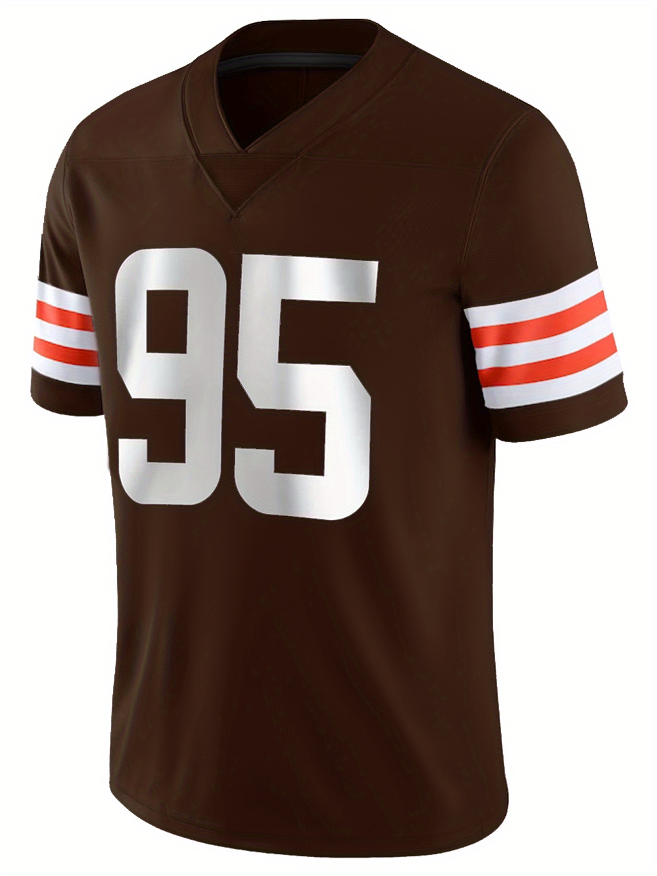 Men's Brown #95 American Football Jersey - Breathable Loose Fit V-Neck with Embroidered Letter Design, All-Season Casual Streetwear for Sports & Outdoor Activities, Football Gear, Durable Sportswear