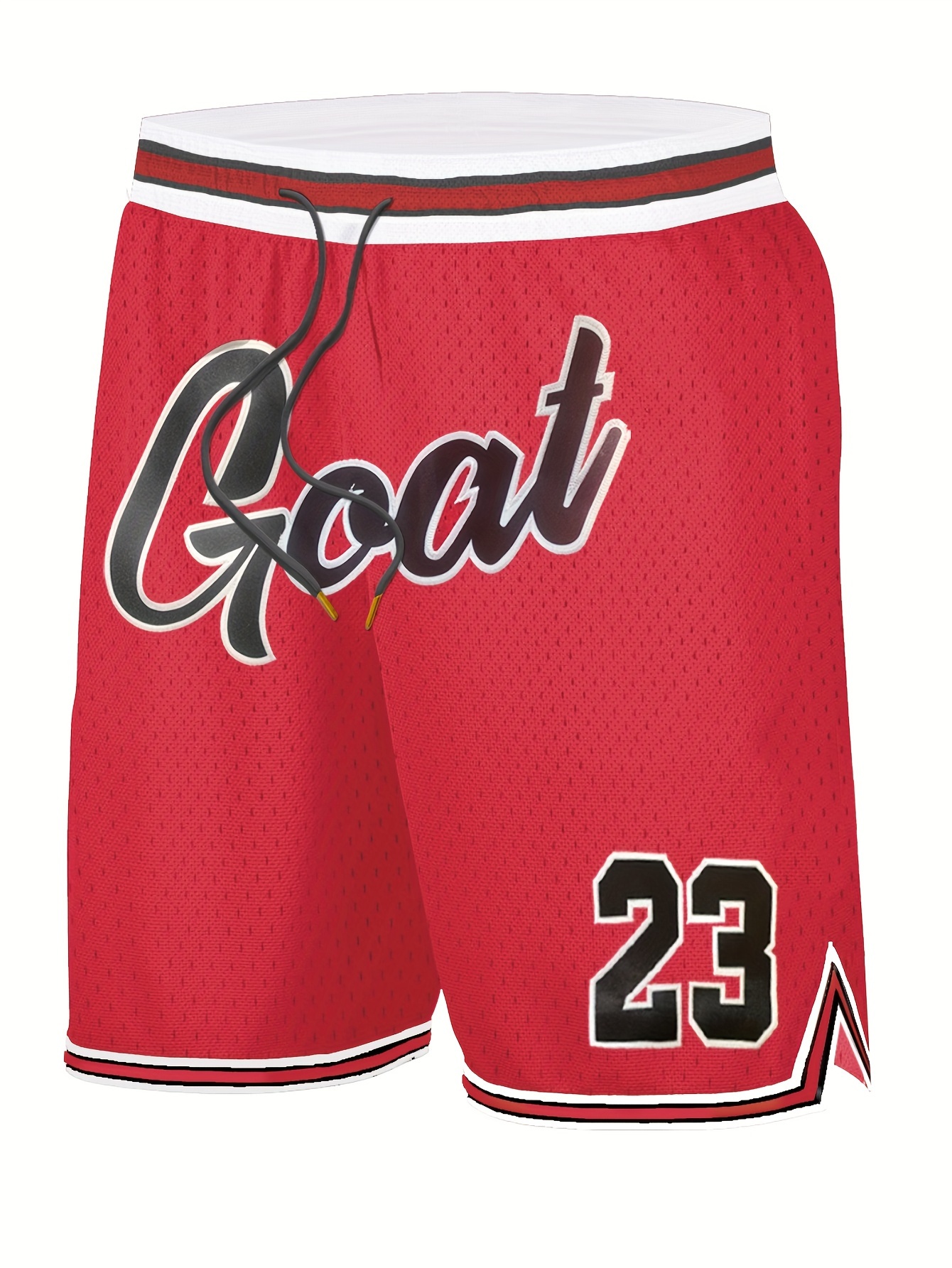 [Red #23 GOAT Basketball Shorts] Men's Red #23 "GOAT" Embroidered Basketball Shorts with Pockets - Breathable & Comfortable Polyester, Elastic Waistband, Zipper Detail for Casual & Sports Wear