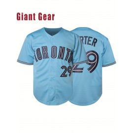 Men'S # 29 Blue Baseball Shirt -100% V-neck Sweatshirt Loose Fit Button Closed Casual And Sportswear Multi Functional Running Training Hiking Cycling Fishing Ideal Size S-3XL