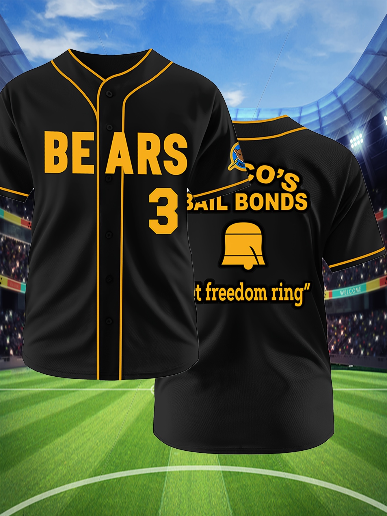 Men's Black # 3 Baseball Shirt, Classic Letter Embroidery Design, Button Style Short Sleeve Breathable Shirt, Training And Competition Category: Men's Baseball Shirt