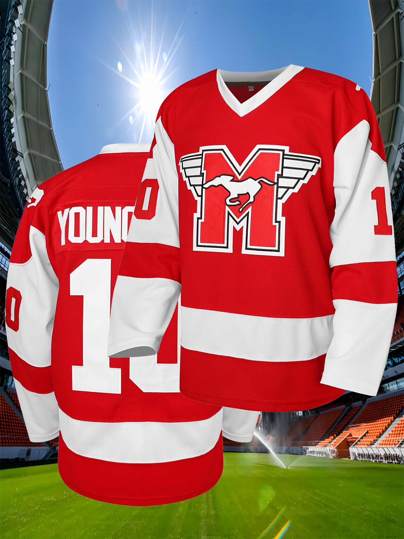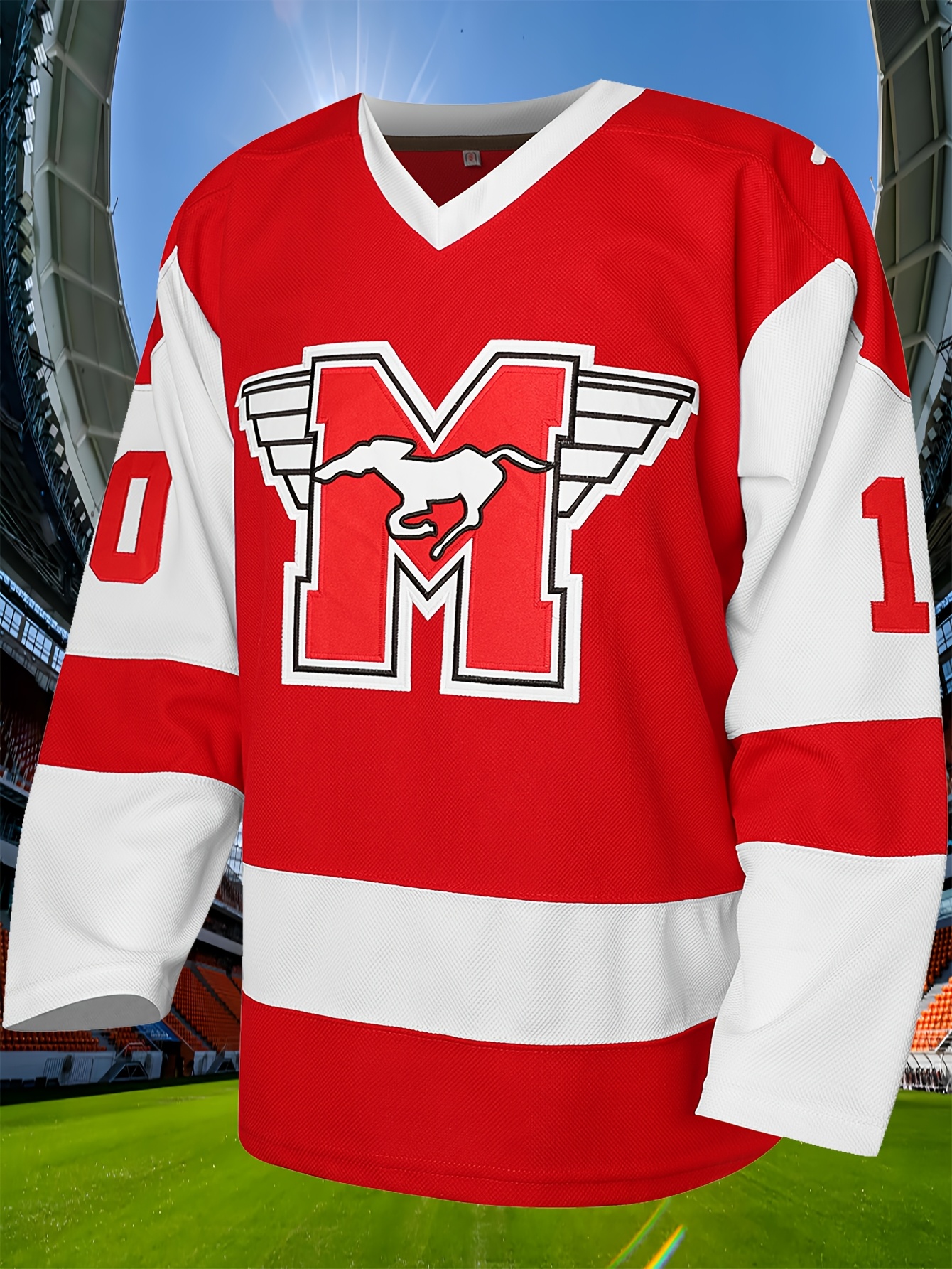Men'S Ice Hockey Jersey # 10 Red Embroidered Ice Hockey Jersey Loose Fit Polyester Knit - Perfect For Casual And Sportswear Machine Washable - Sizes From S To XXXL