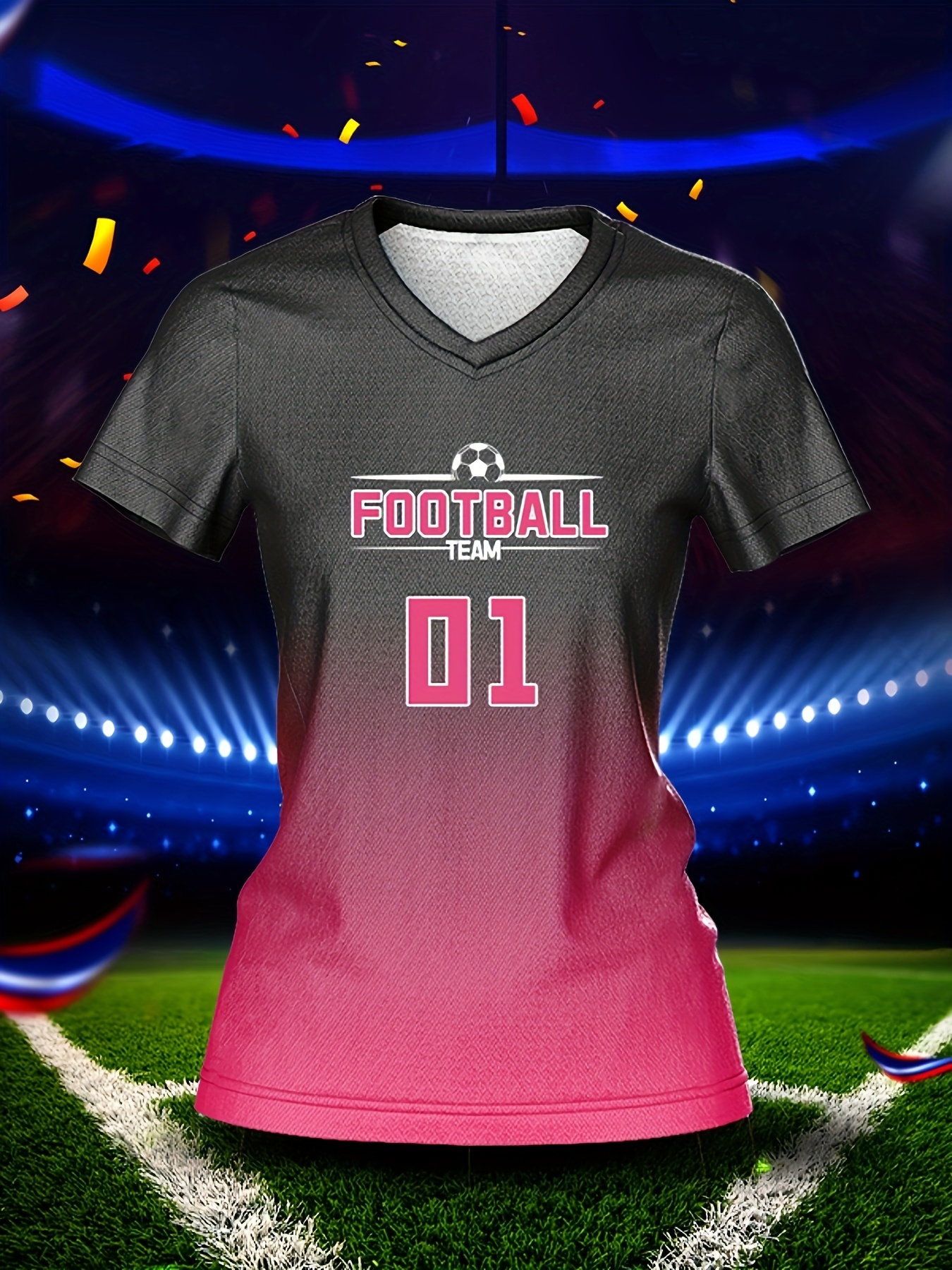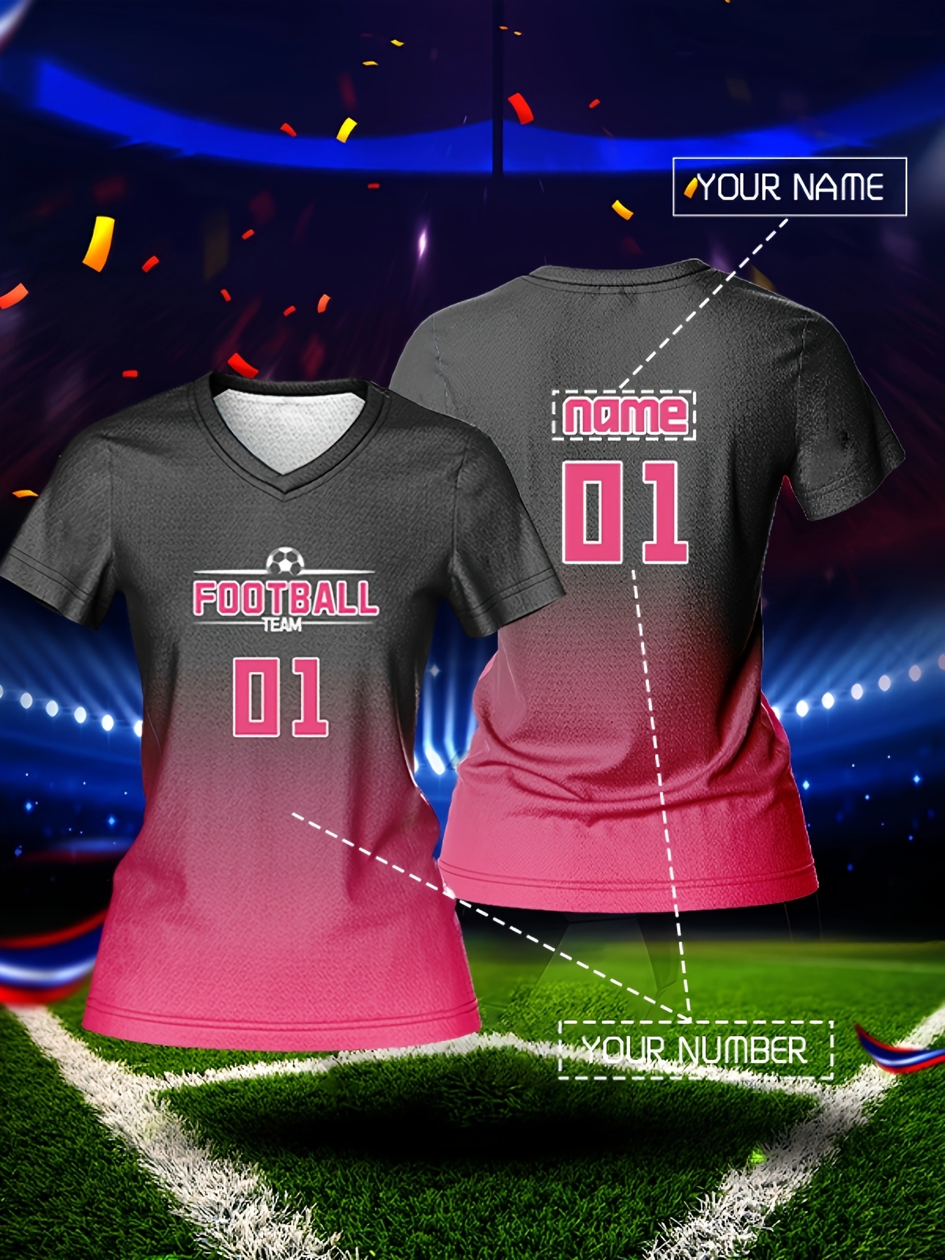 Customizable Women'S V-Neck Football Jersey, Polyester 100%, Quick-Dry Knit Fabric, Regular Length, All Over Print, Slight Stretch, for Team Training & Fitness, Spring/Summer/Fall Sports Top