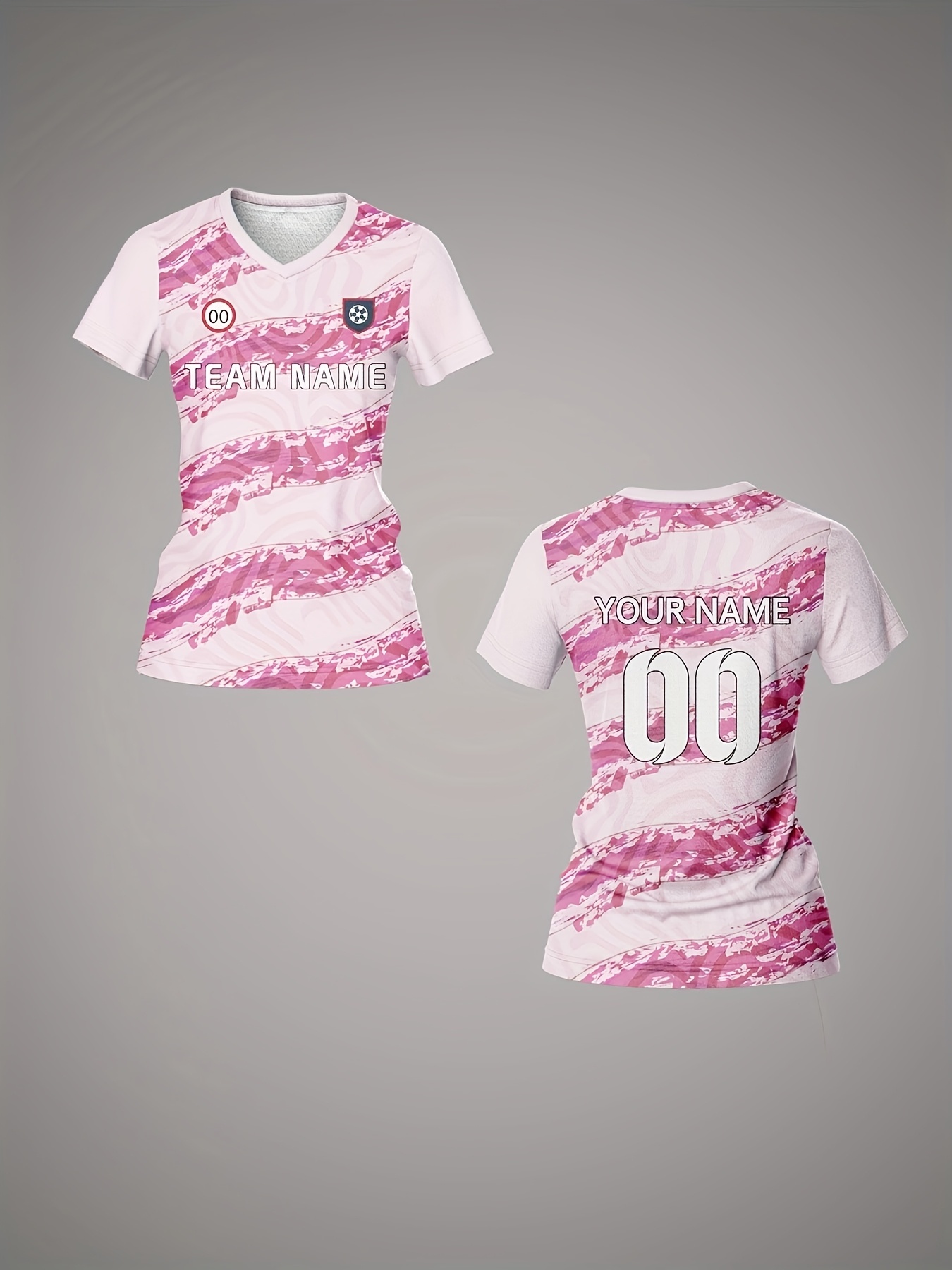 Women's V-Neck Soccer Jersey | Customizable Name & Number | Breathable Polyester | Quick-Dry, Moisture-Wicking | Multi-Color Striped Pattern | Ideal for Sports & Casual Wear