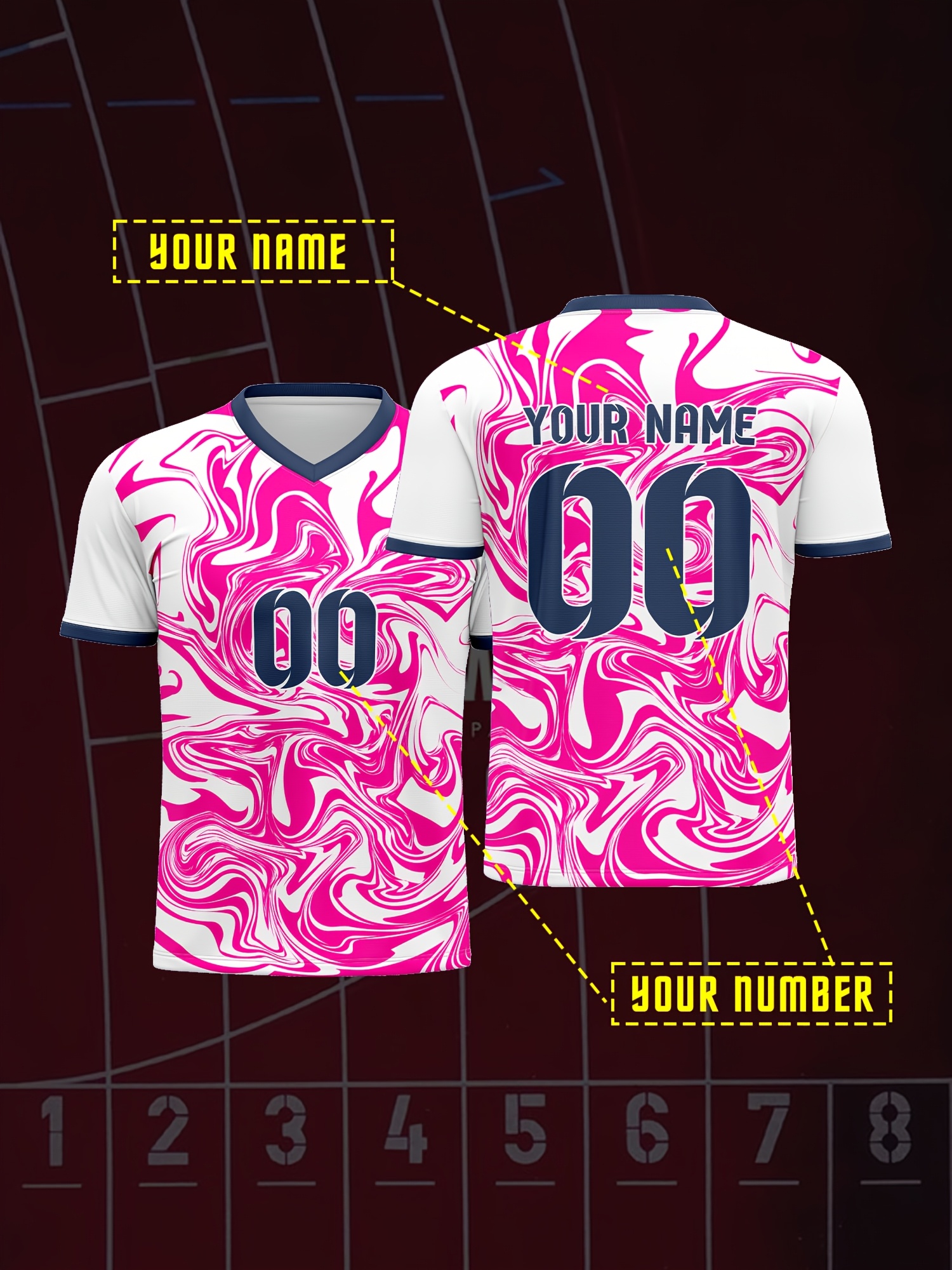 1pc Customizable Soccer Jersey for Kids - V-Neck, All-Over Print, Knit Fabric, Polyester, Medium Stretch, Personalized Name & Number, for Boys & Girls, Sports & Casual Wear, Spring/Summer/Fall