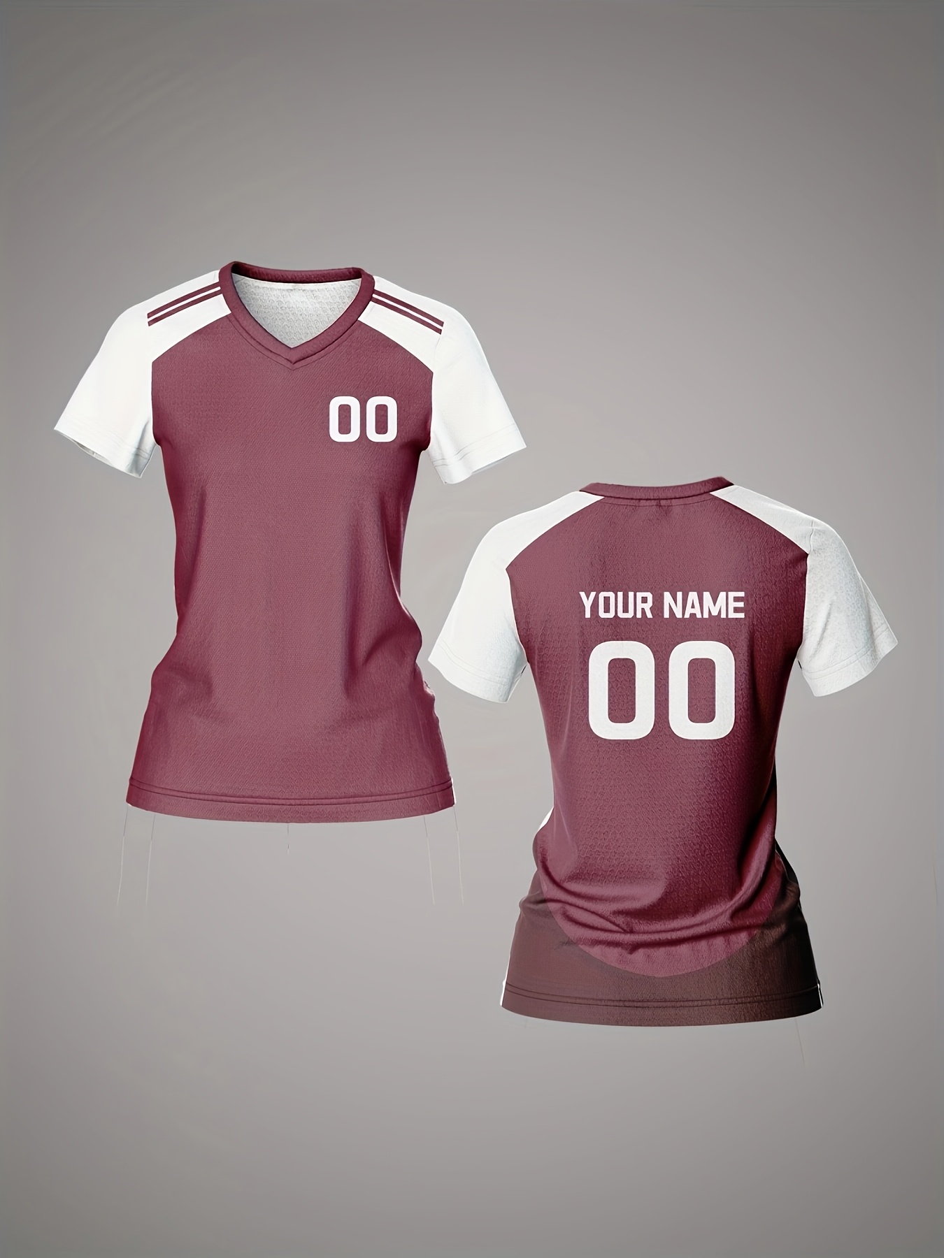 [Customizable Soccer Jersey] Maroon & White Customizable Women's V-Neck Soccer Jersey | Quick-Dry Fabric, Breathable, Training Apparel with Name & Number