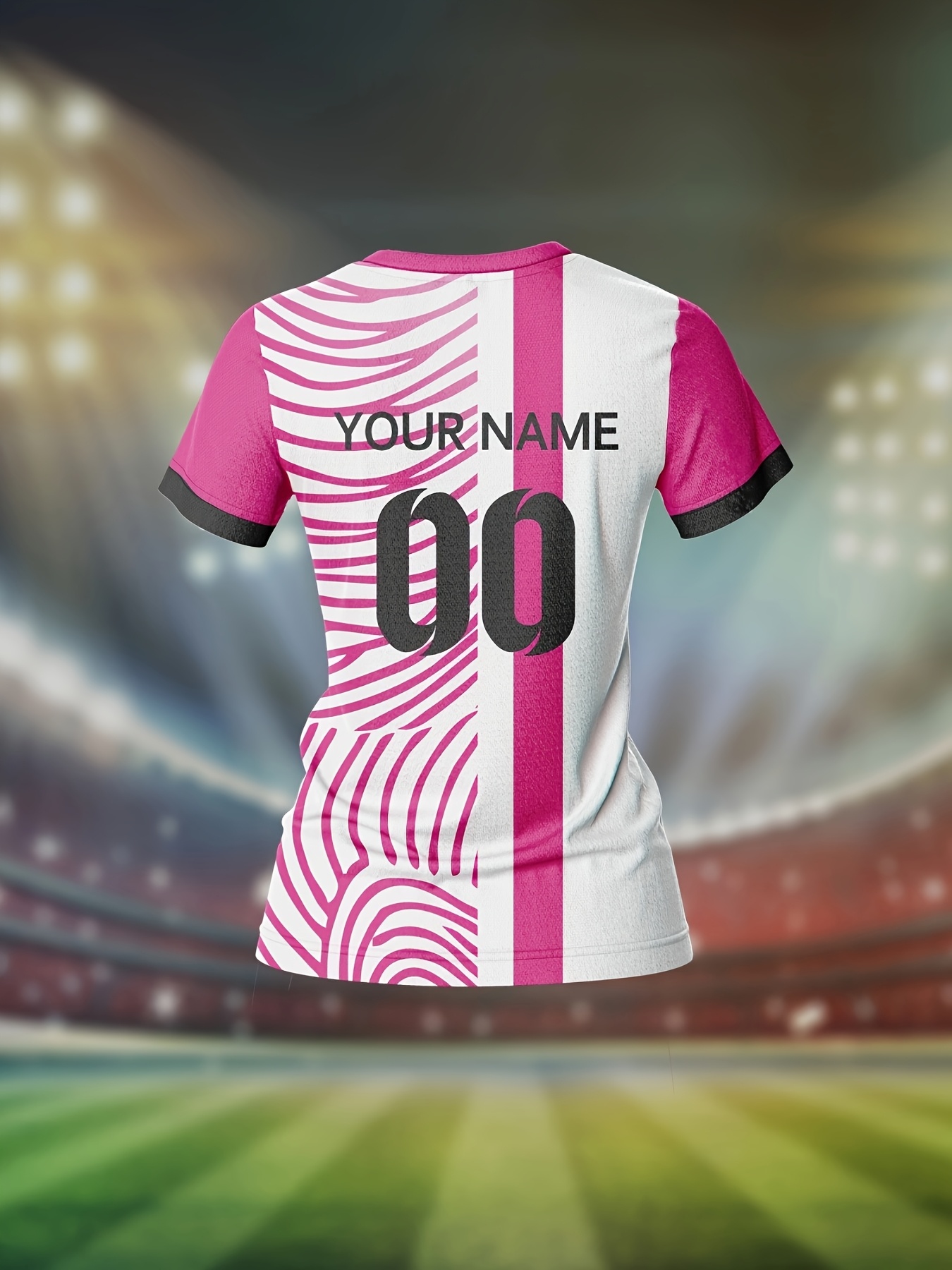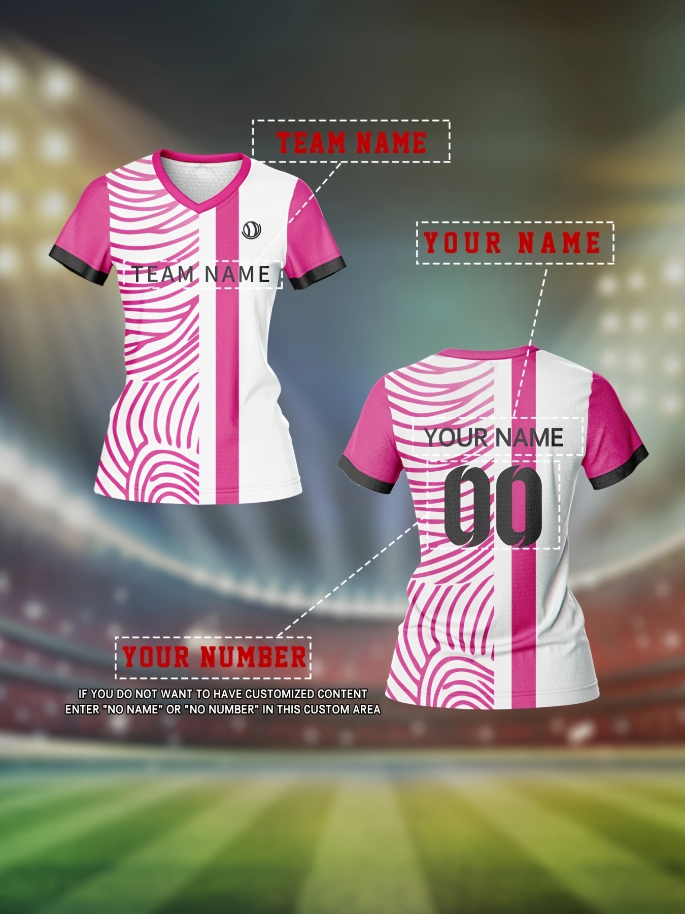 Customizable Women'S V-Neck Soccer Jersey - Personalized Team Name & Number, Breathable & Quick-Dry Fitness Shirt for Training & Casual Wear, Pink & White Design, Spring/Summer/Fall, Training Apparel | Stylish Soccer Top | Quickdry Materia