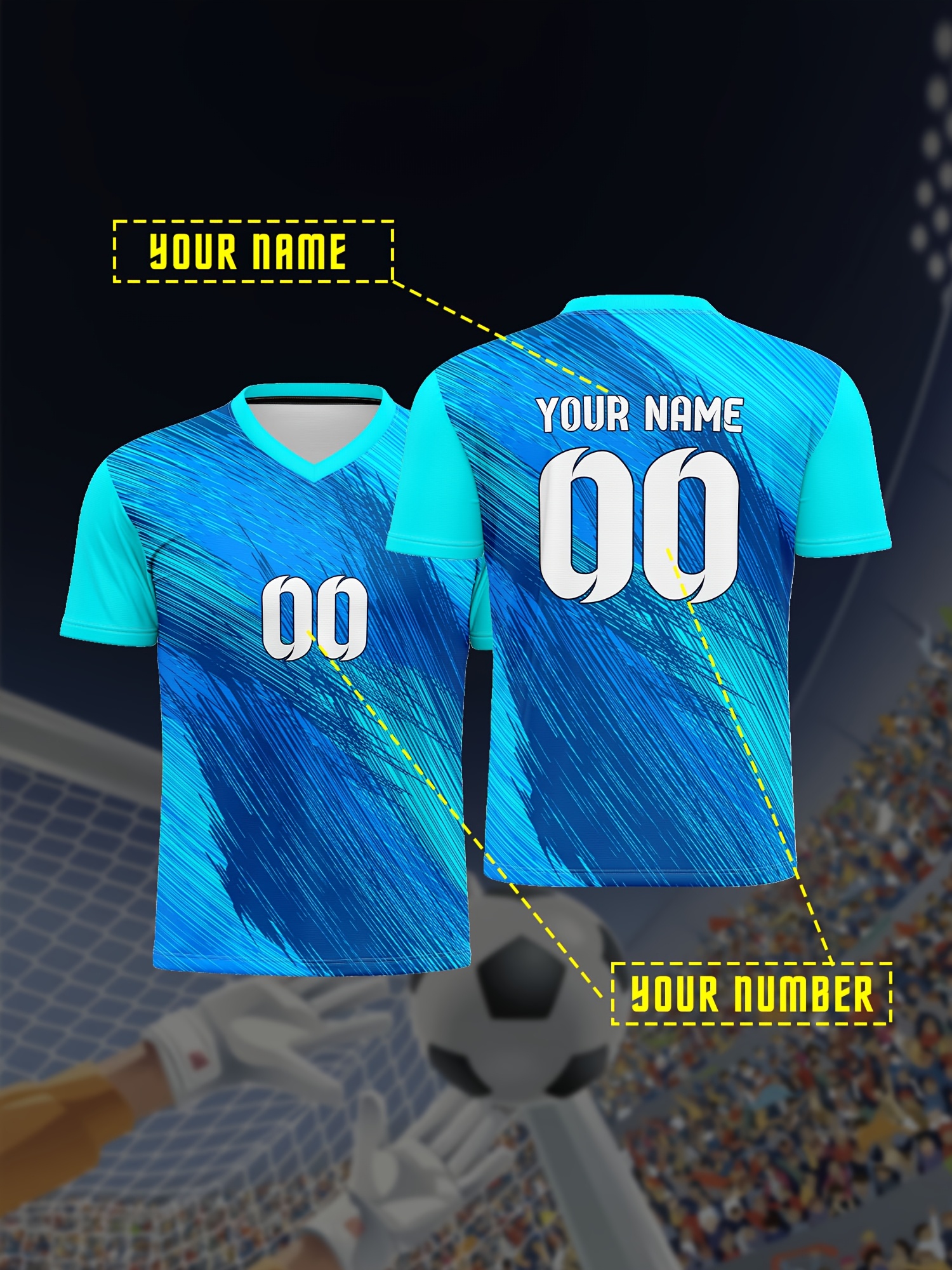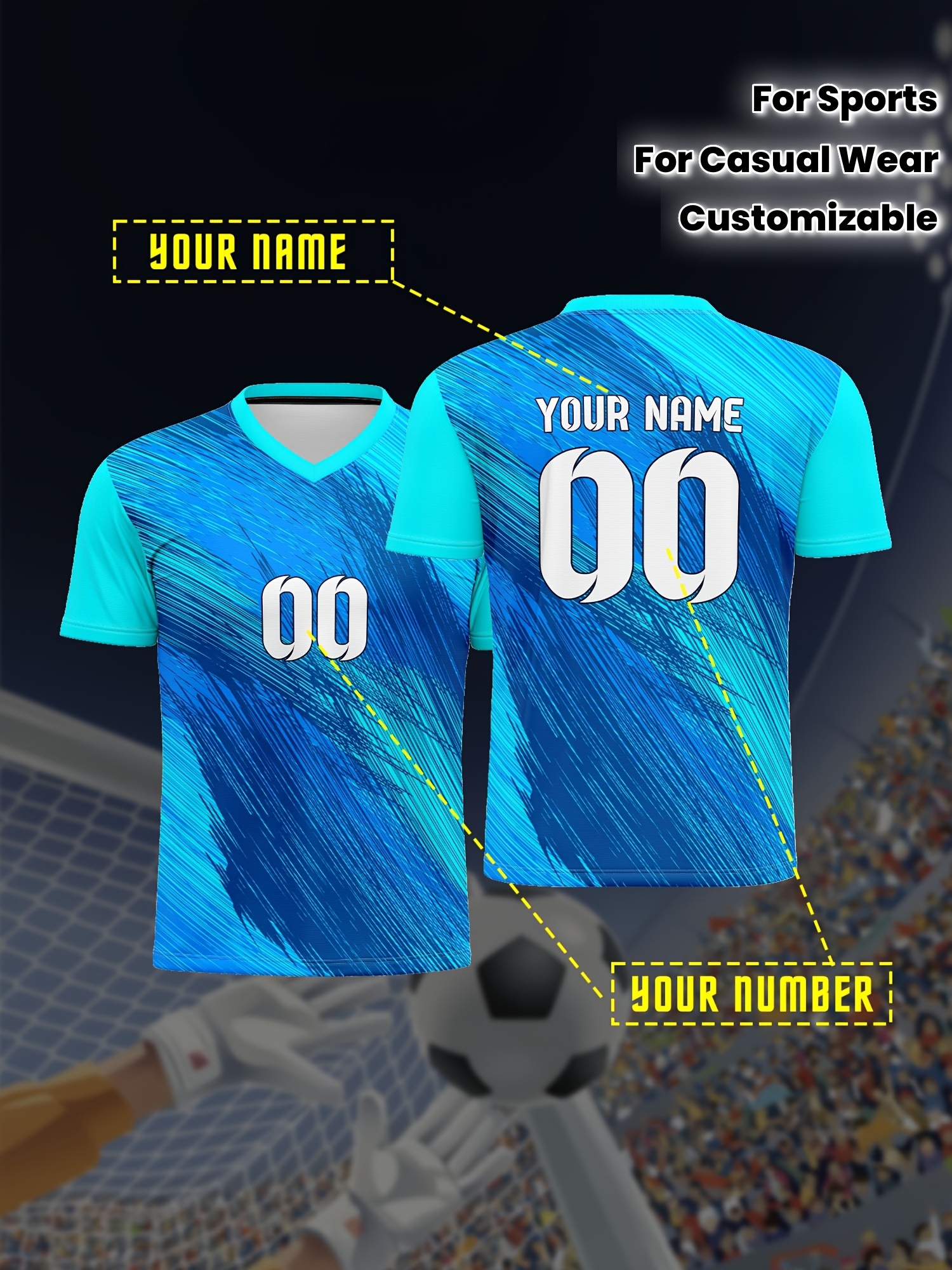 1pc Customizable Soccer Jersey for Kids - V-Neck, All-Season Knit Polyester Football Shirt with Personalized Name & Number, Preppy Street Style, Medium Stretch, for Sports & Casual Wear