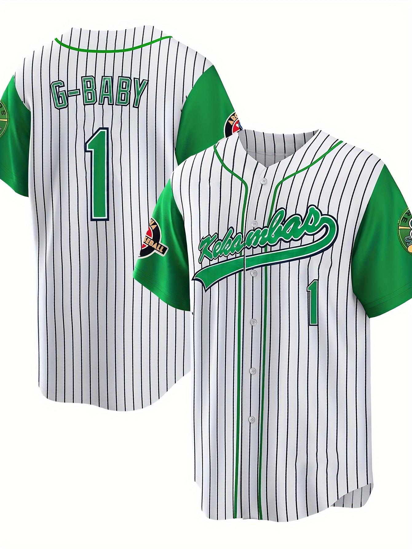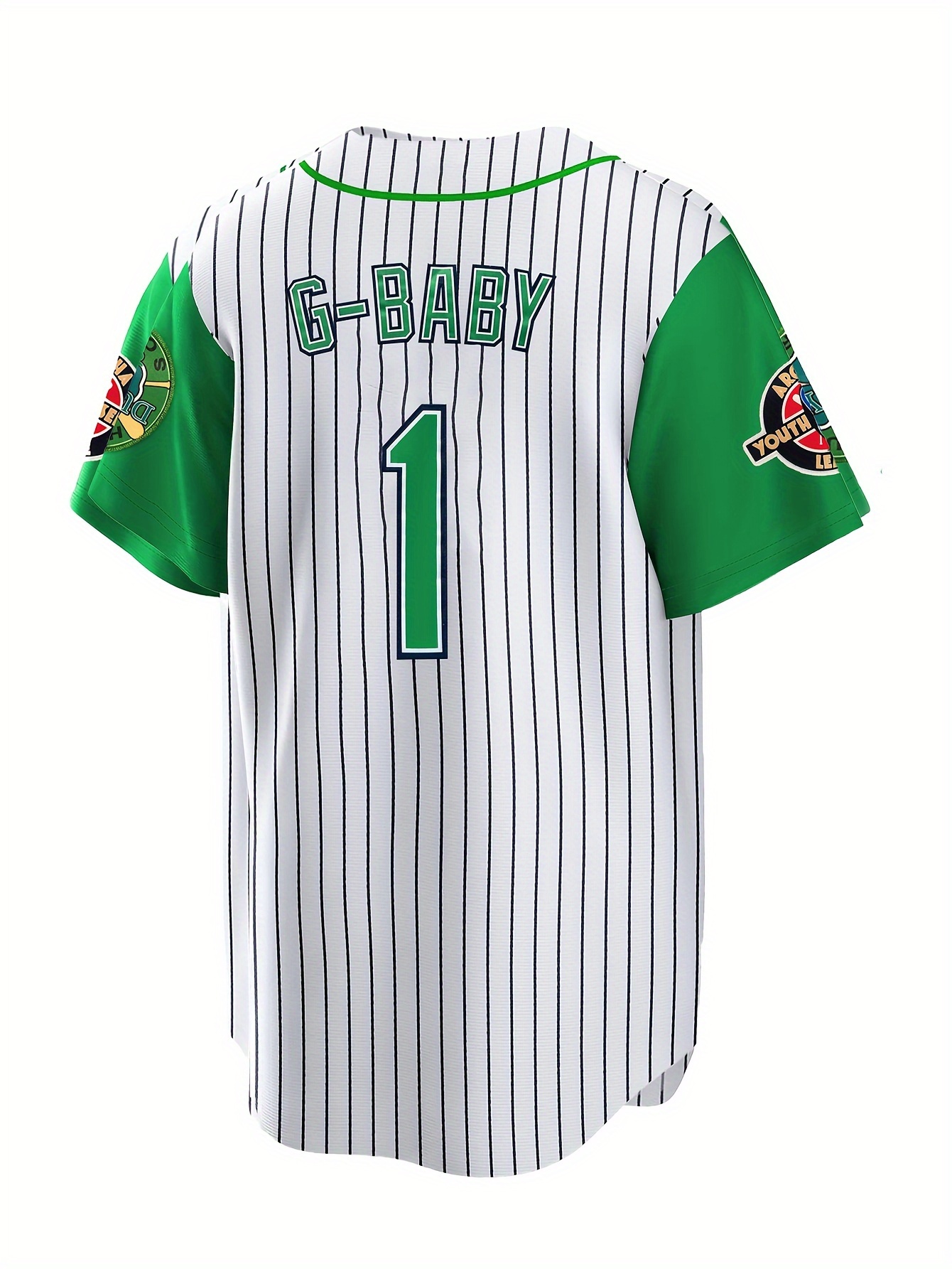 Men's #1 G-Youngsters Embroidered Baseball Jersey - Green & Black Striped, Breathable Polyester, V-Neck, Button-Up, Casual & Sporty Style for Parties, Streetwear, Training & Casual Attire