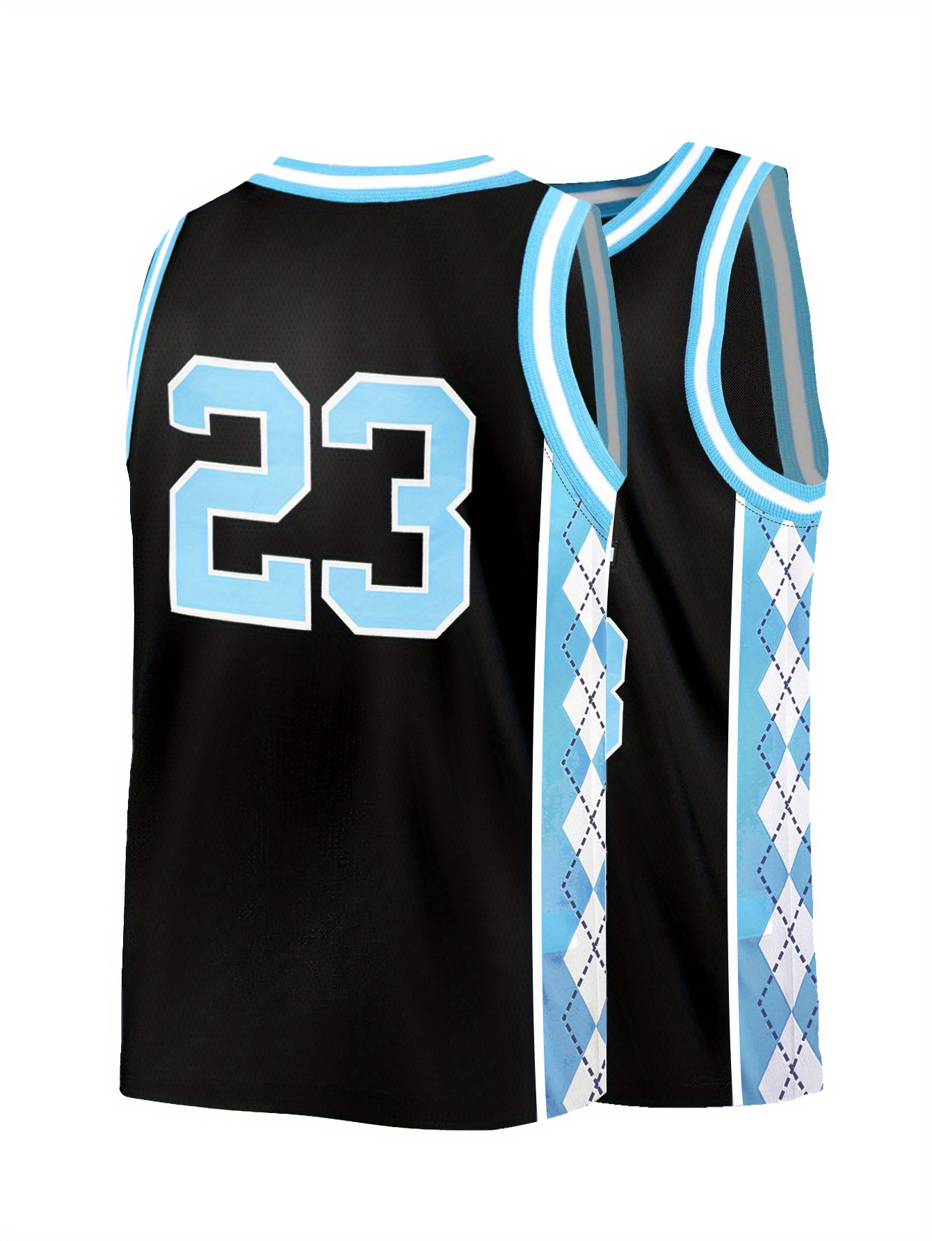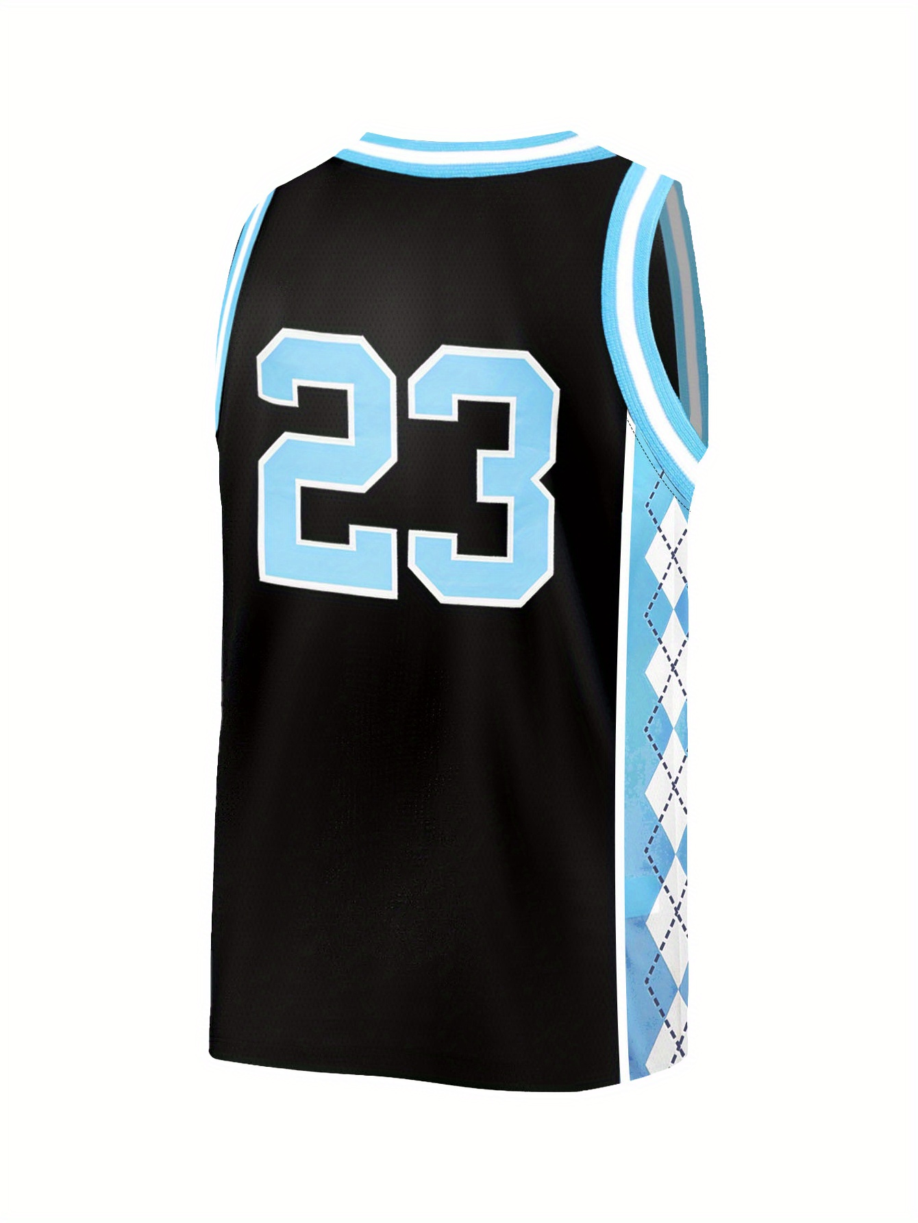 Men'S Black # 23 Patchwork Checkered Basketball Shirt, Casual, Fashionable, Breathable, High-Quality Embroidered Street Basketball Pullover for Sports