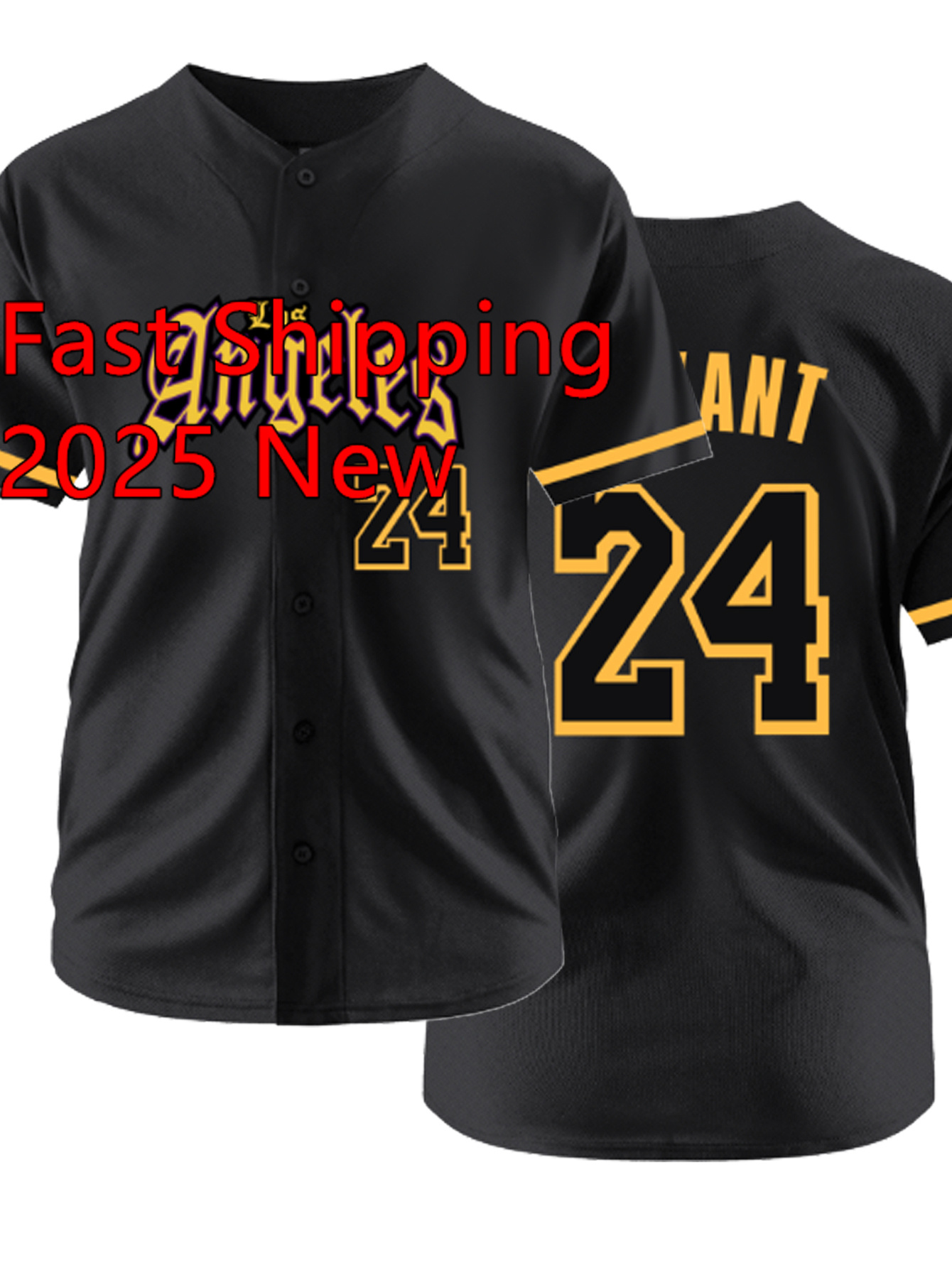 Men's Black #24 Baseball Jersey - Embroidered Letters, Breathable Loose Fit V-Neck Button-Up Shirt for Streetwear, Sports & Outdoor Activities | All-Season Casual Athletic Top for Men & Teens, Sports Activity Apparel, Embroidered Detailing