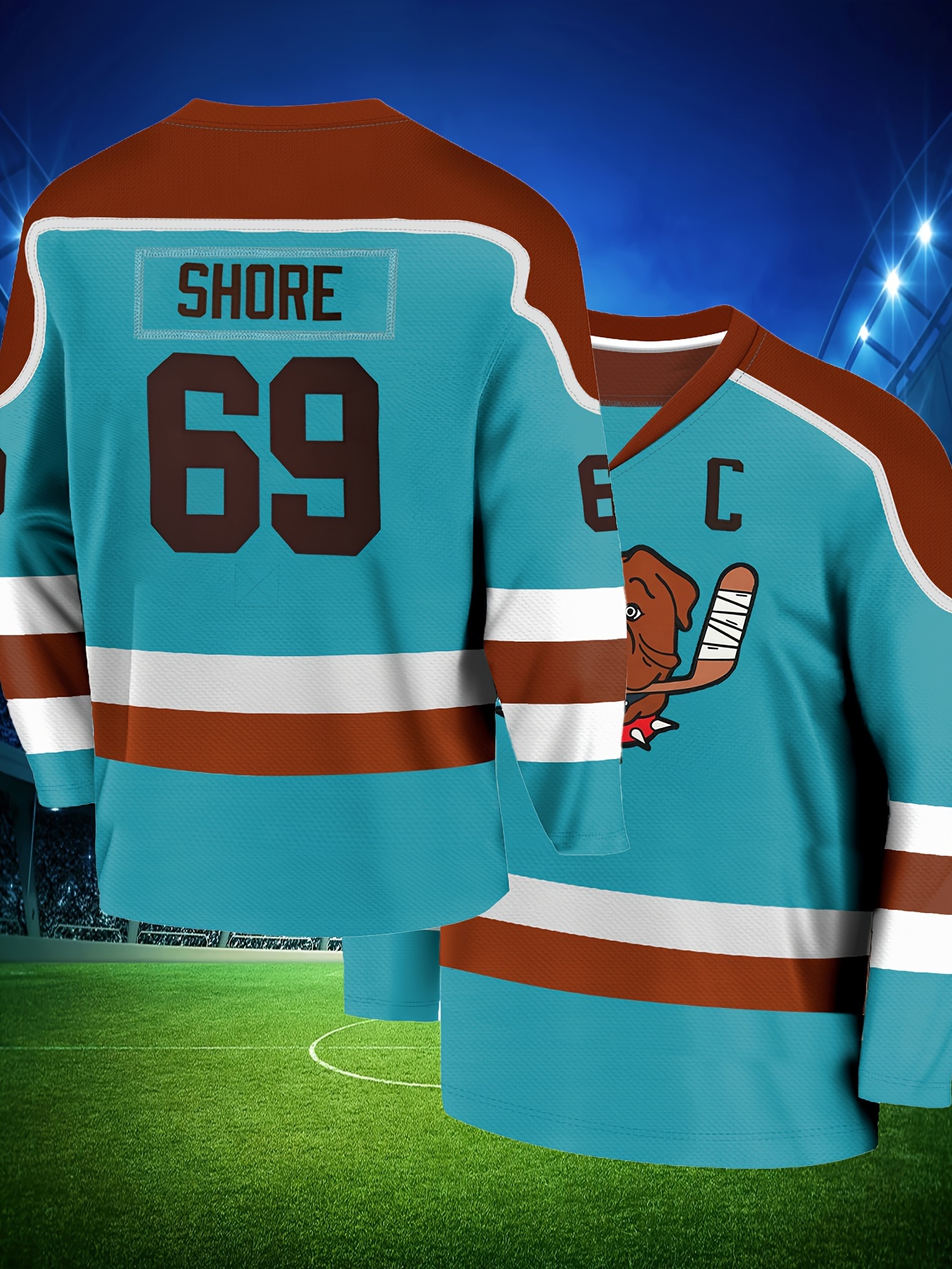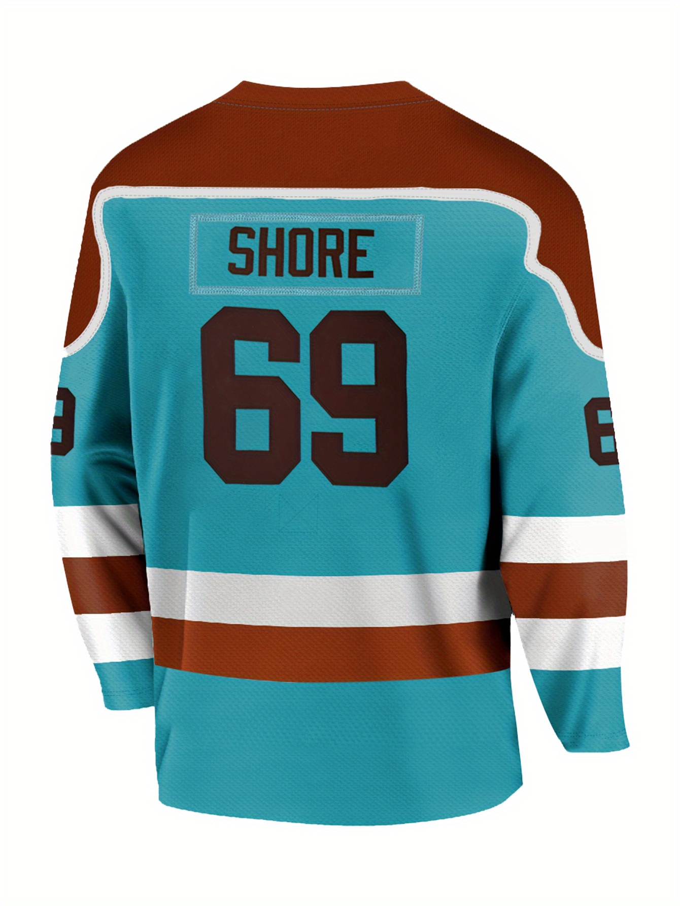 Men's Moon Blue #69 Ice Hockey Jersey - Loose Fit Embroidered Long Sleeve V-Neck, 100% Polyester Breathable Sportswear for Casual Streetwear, Outdoor Activities & Sports Events, SHLUCKI