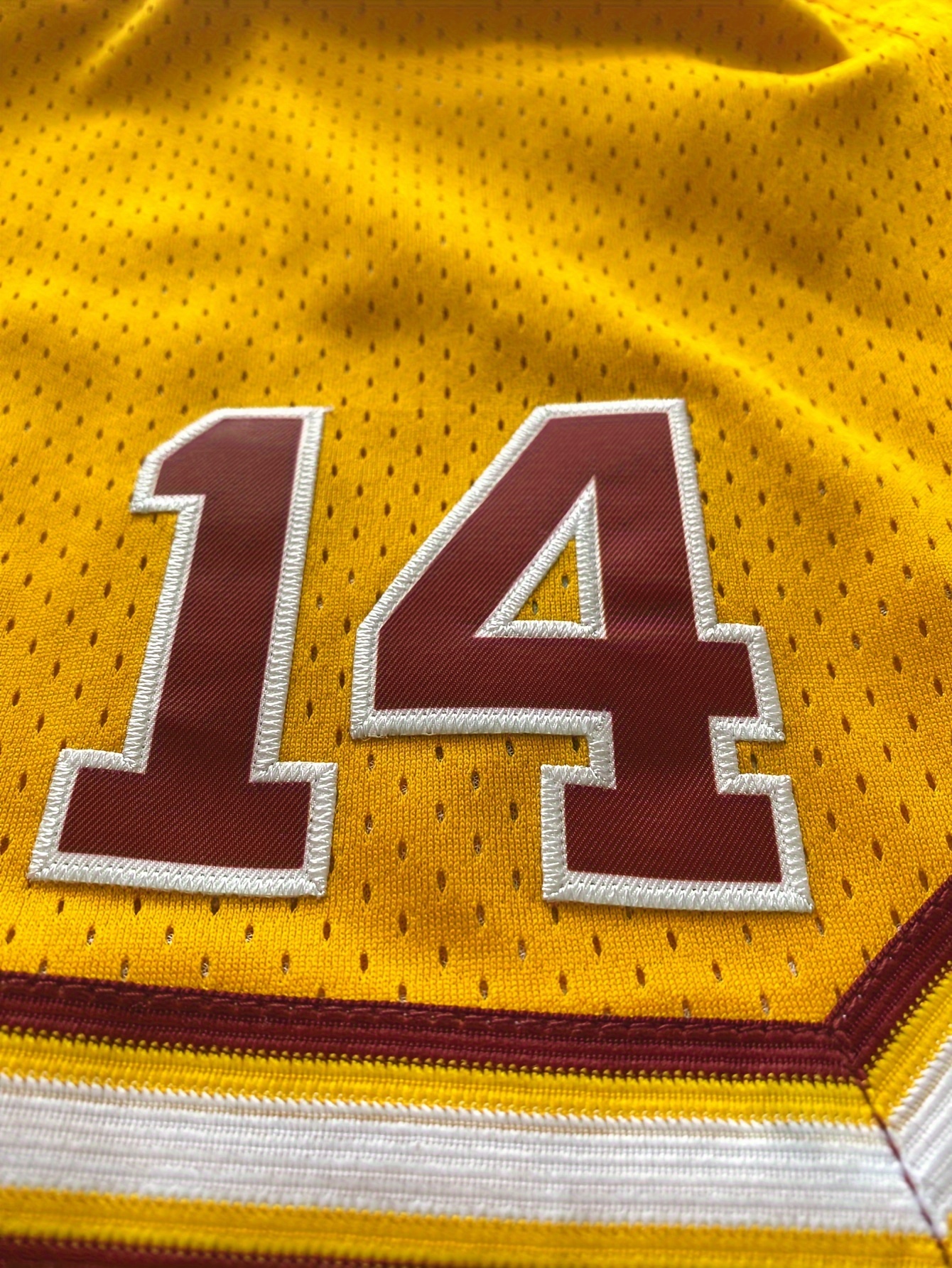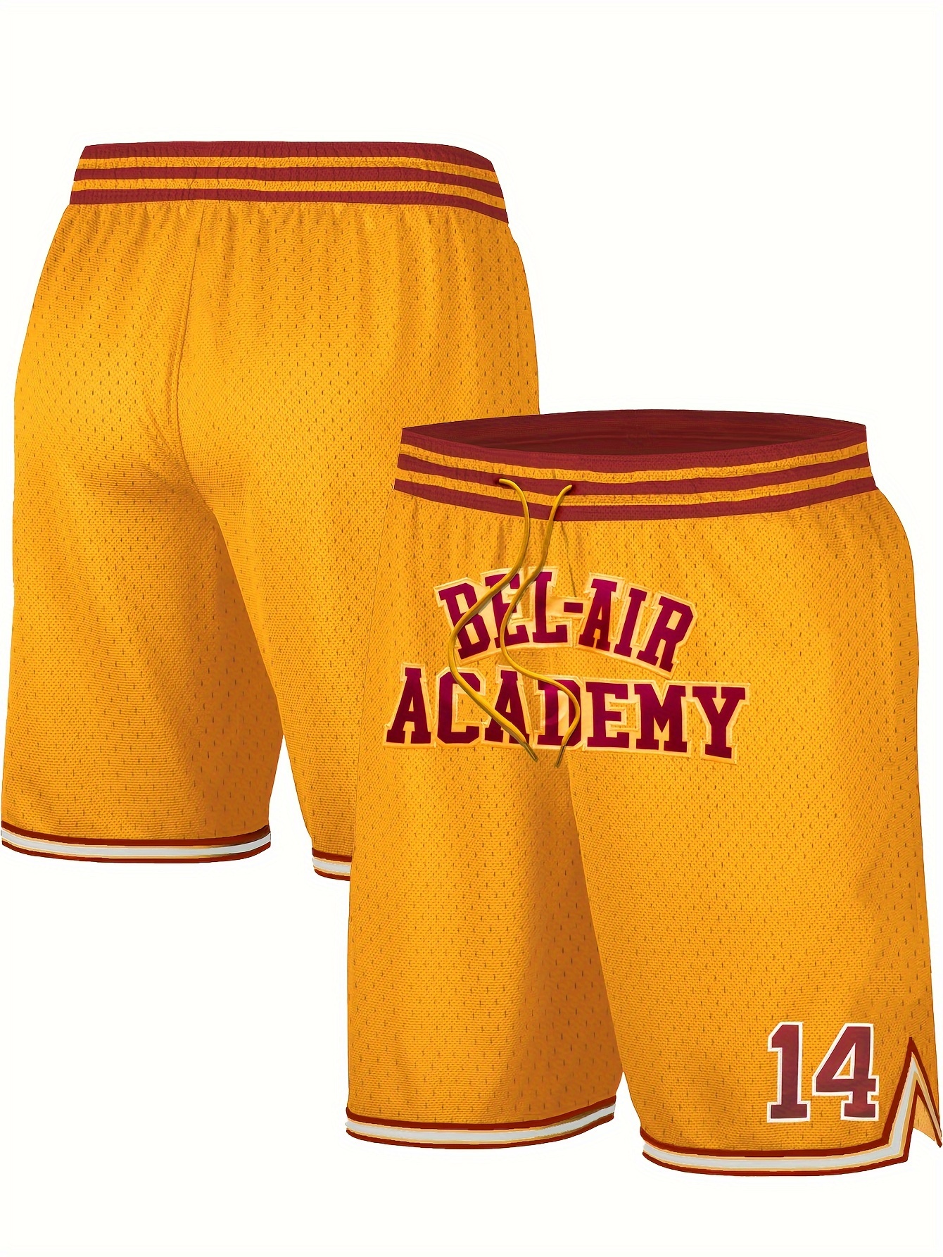 Men's Yellow # 14 Basketball Shorts with Pockets, Casual Fashion, Breathable Sports Zipper, High Quality Embroidered Shorts