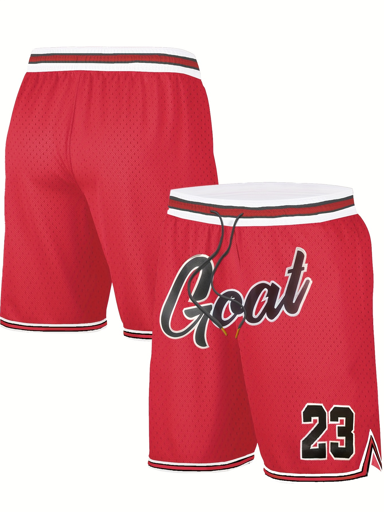 [Red #23 GOAT Basketball Shorts] Men's Red #23 "GOAT" Embroidered Basketball Shorts with Pockets - Breathable & Comfortable Polyester, Elastic Waistband, Zipper Detail for Casual & Sports Wear