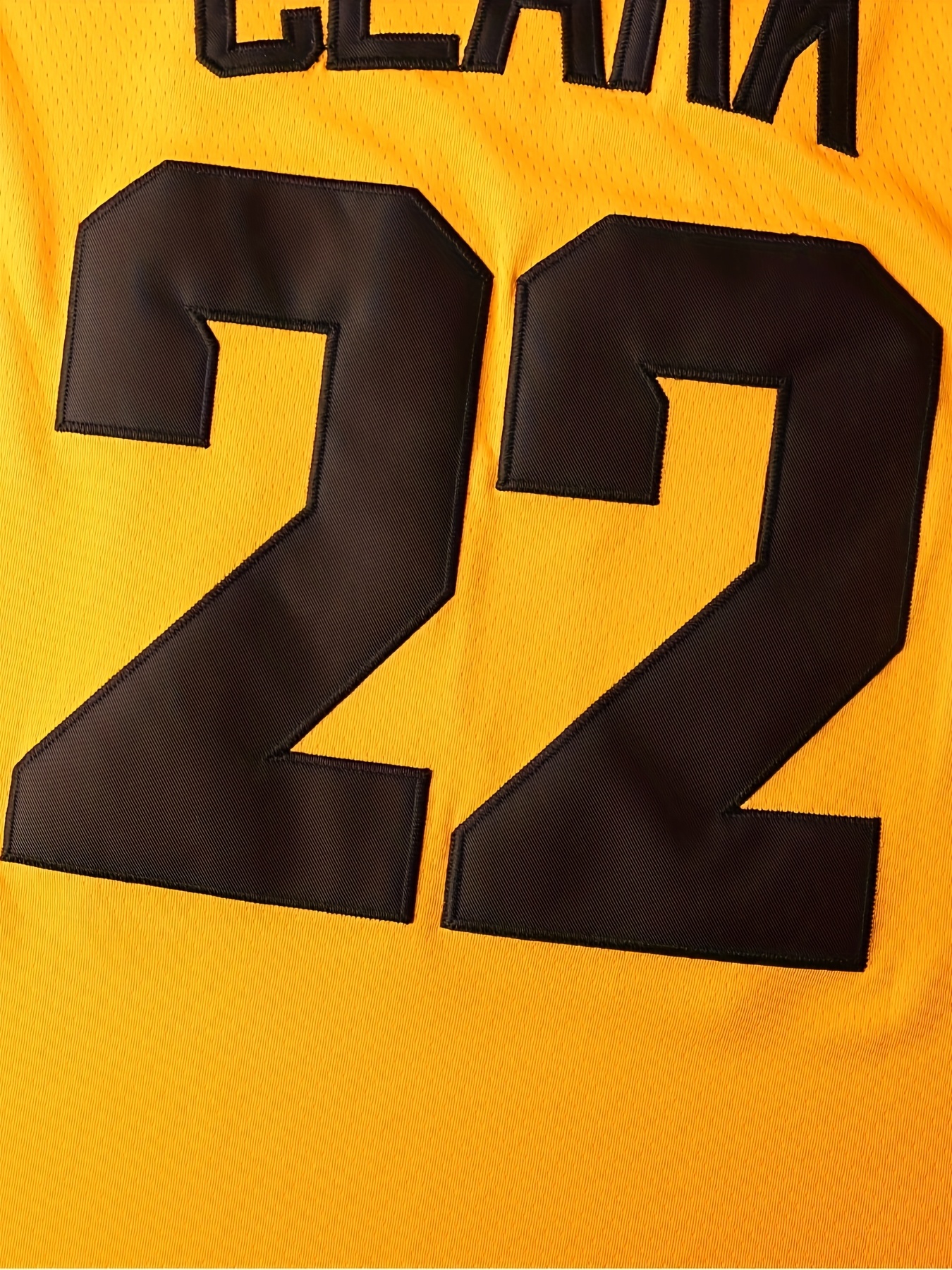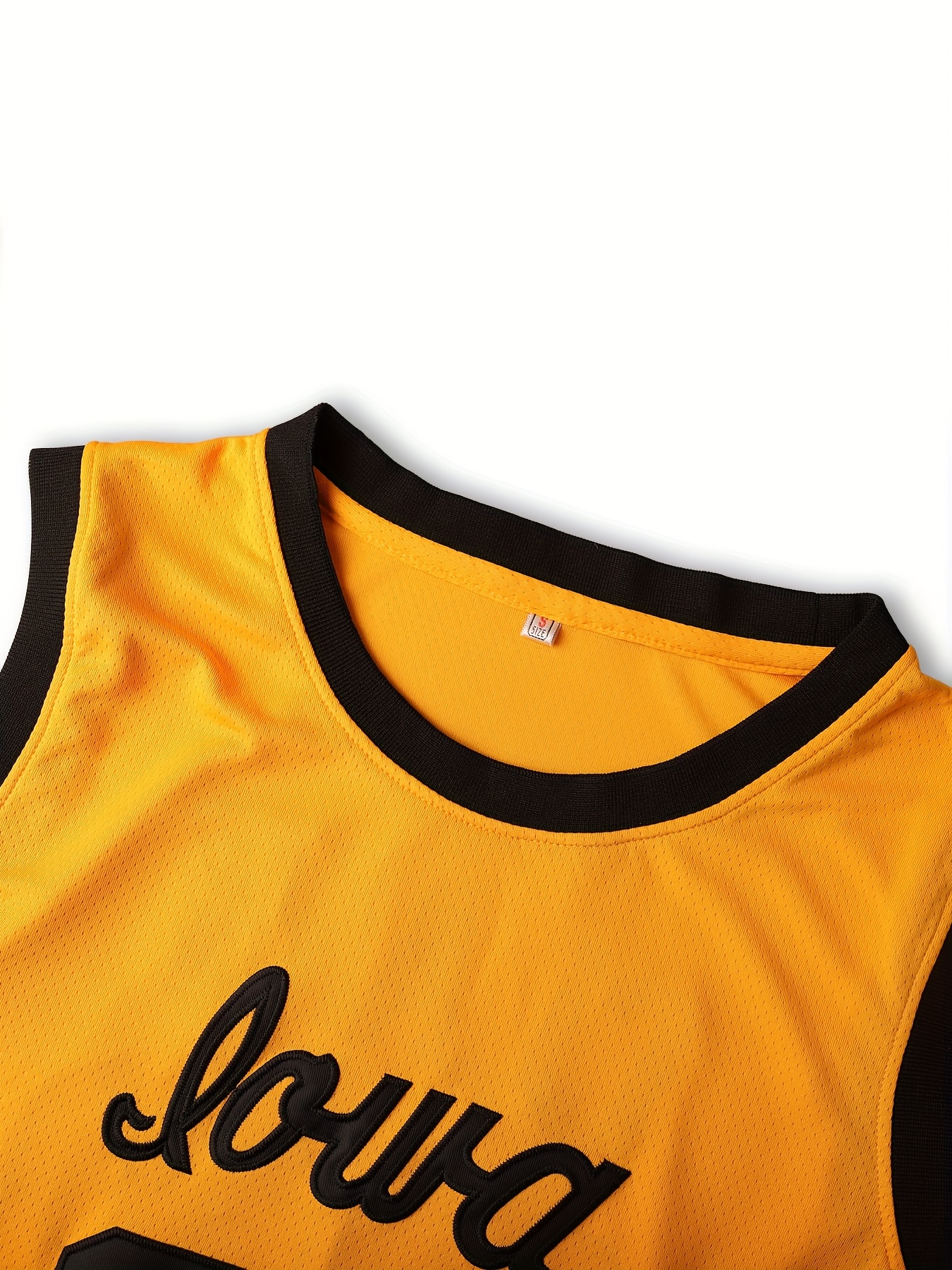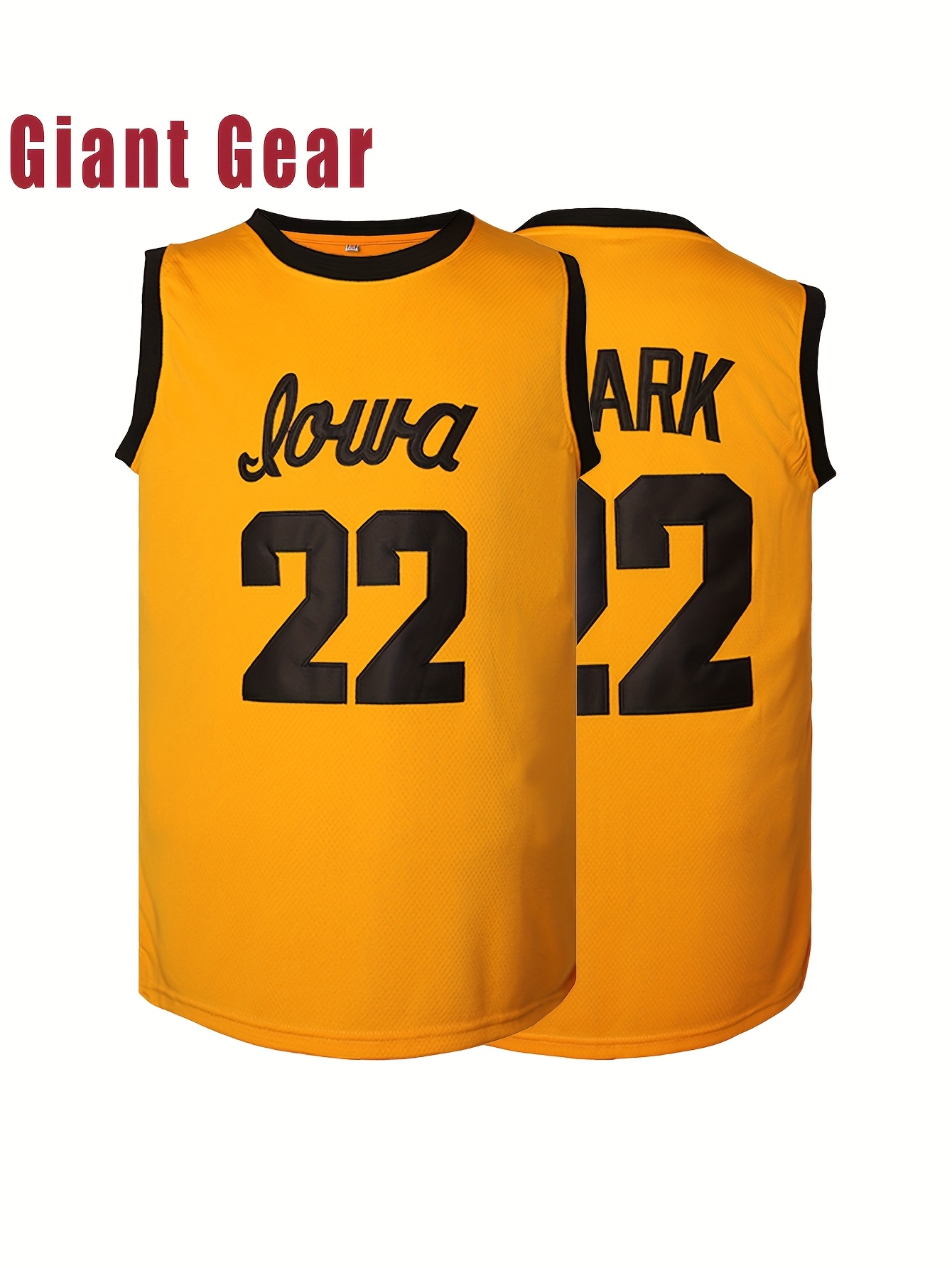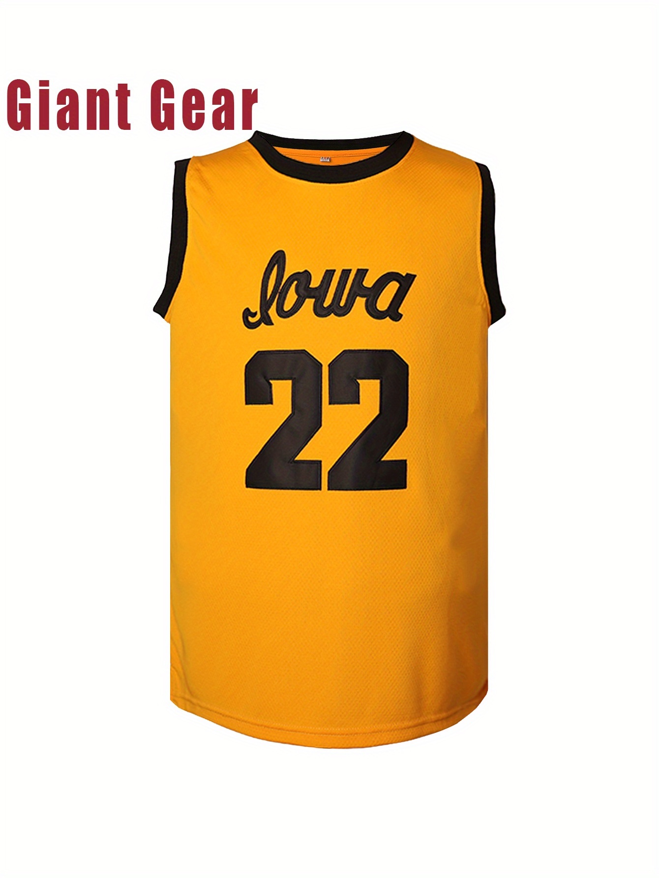 Men'S Basketball Suit # 22 Yellow Round Neck Embroidered Polyester Loose Micro Elastic Fabric S-3XL
