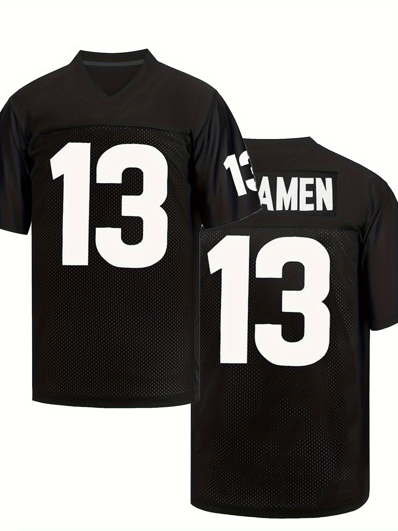 Men's Black # 13 American Football Jersey Loose Embroidered Sports, Fashionable, Casual, Street Breathable Football Jersey