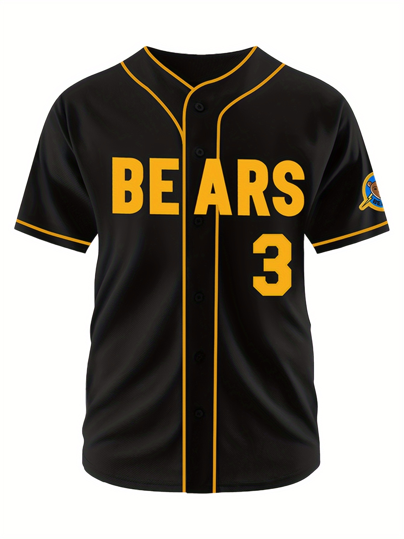 Men's Black # 3 Baseball Shirt, Classic Letter Embroidery Design, Button Style Short Sleeve Breathable Shirt, Training And Competition Category: Men's Baseball Shirt