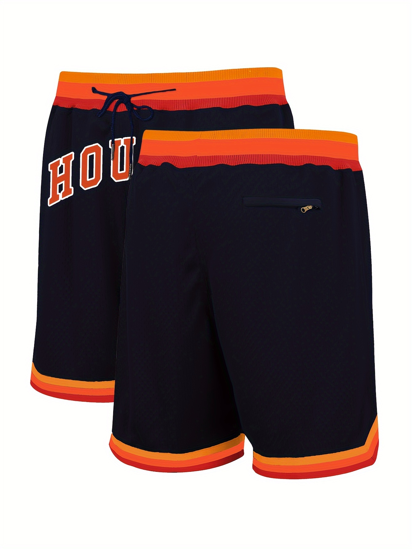 Men'S Blue Basketball Shorts With Pockets, Casual, Fashionable, Breathable, Sports Zipper, High-quality Embroidered Shorts