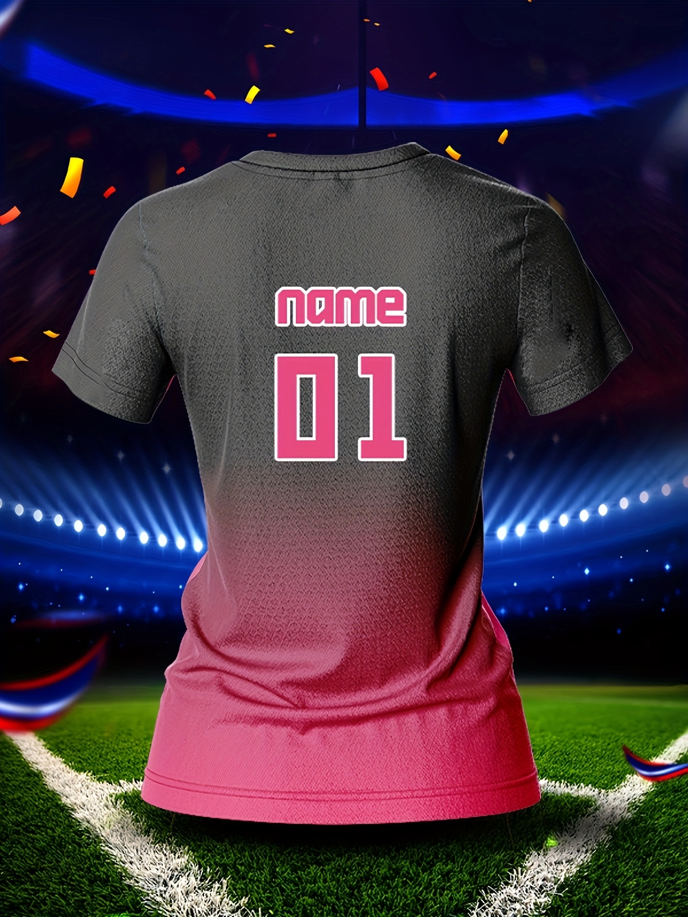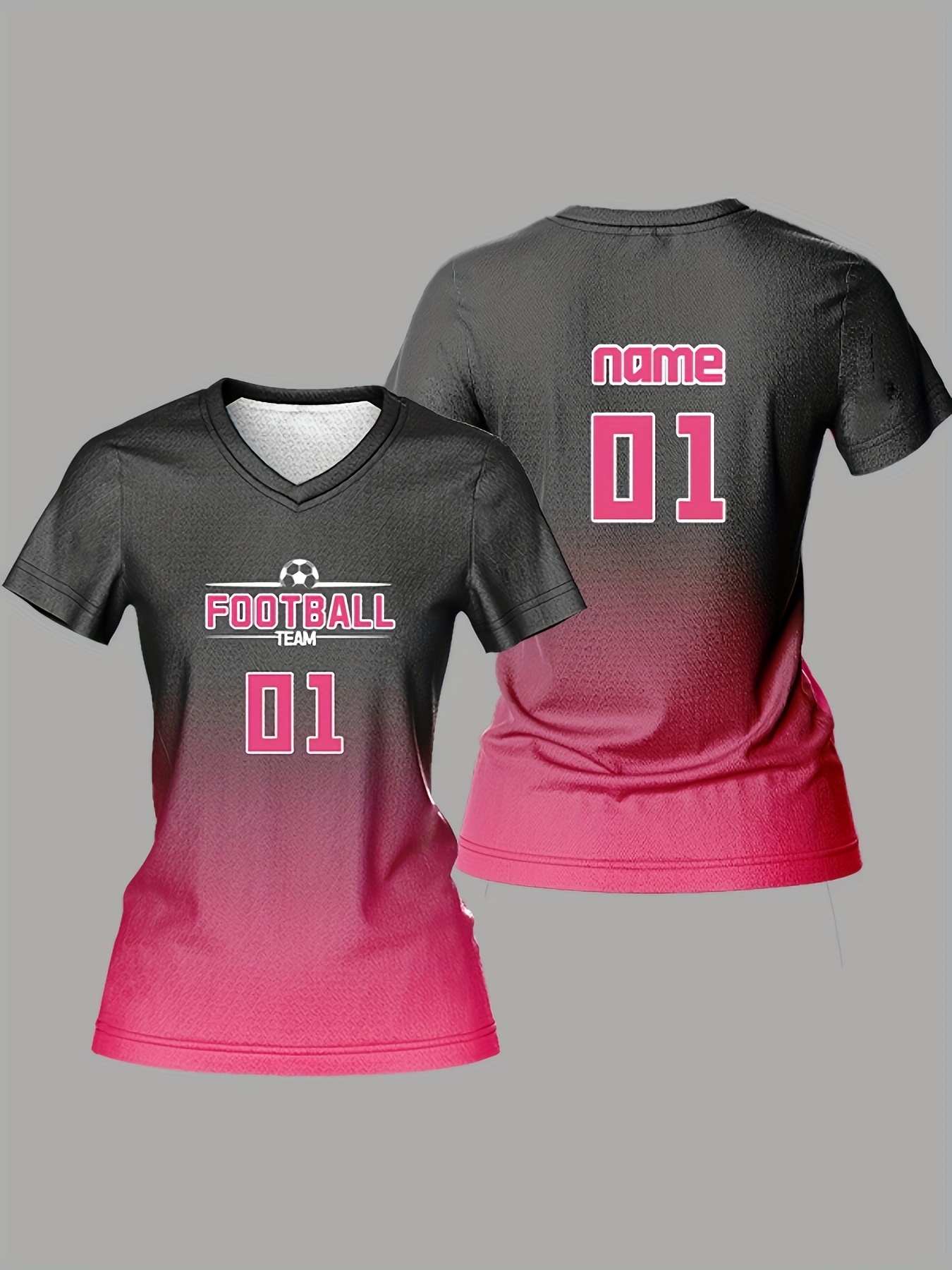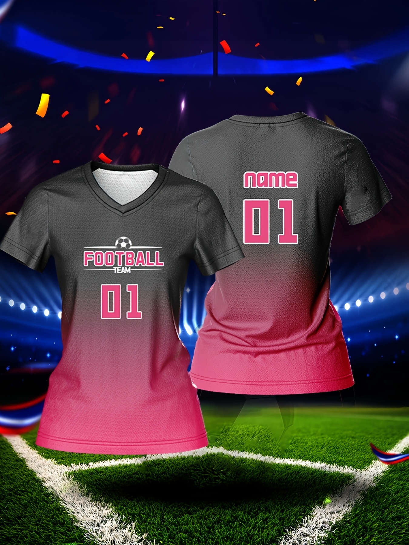 Customizable Women'S V-Neck Football Jersey, Polyester 100%, Quick-Dry Knit Fabric, Regular Length, All Over Print, Slight Stretch, for Team Training & Fitness, Spring/Summer/Fall Sports Top